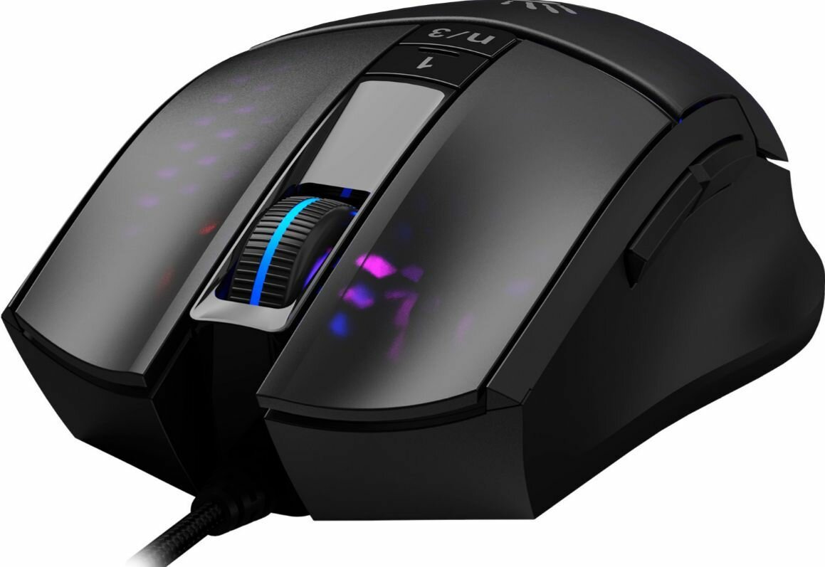 Мышь проводная A4Tech Bloody L65 Max - игровой компьютерный манипулятор, выделяющийся черно-фиолетовой расцветкой корпуса и RGB-подсветкой с 16.8 млн цветовых эффектов. Покрытие мышки способствует надежному хвату и более уверенному управлению. Невероятная точность при прохождении игр любого жанра обеспечена минимальным временем отклика, равным 1 миллисекунде. Разрешение оптического светодиодного датчика BC3332-A можно настроить в широчайшем диапазоне 100-12000 dpi. Частота опроса может достигать 2000 Гц.