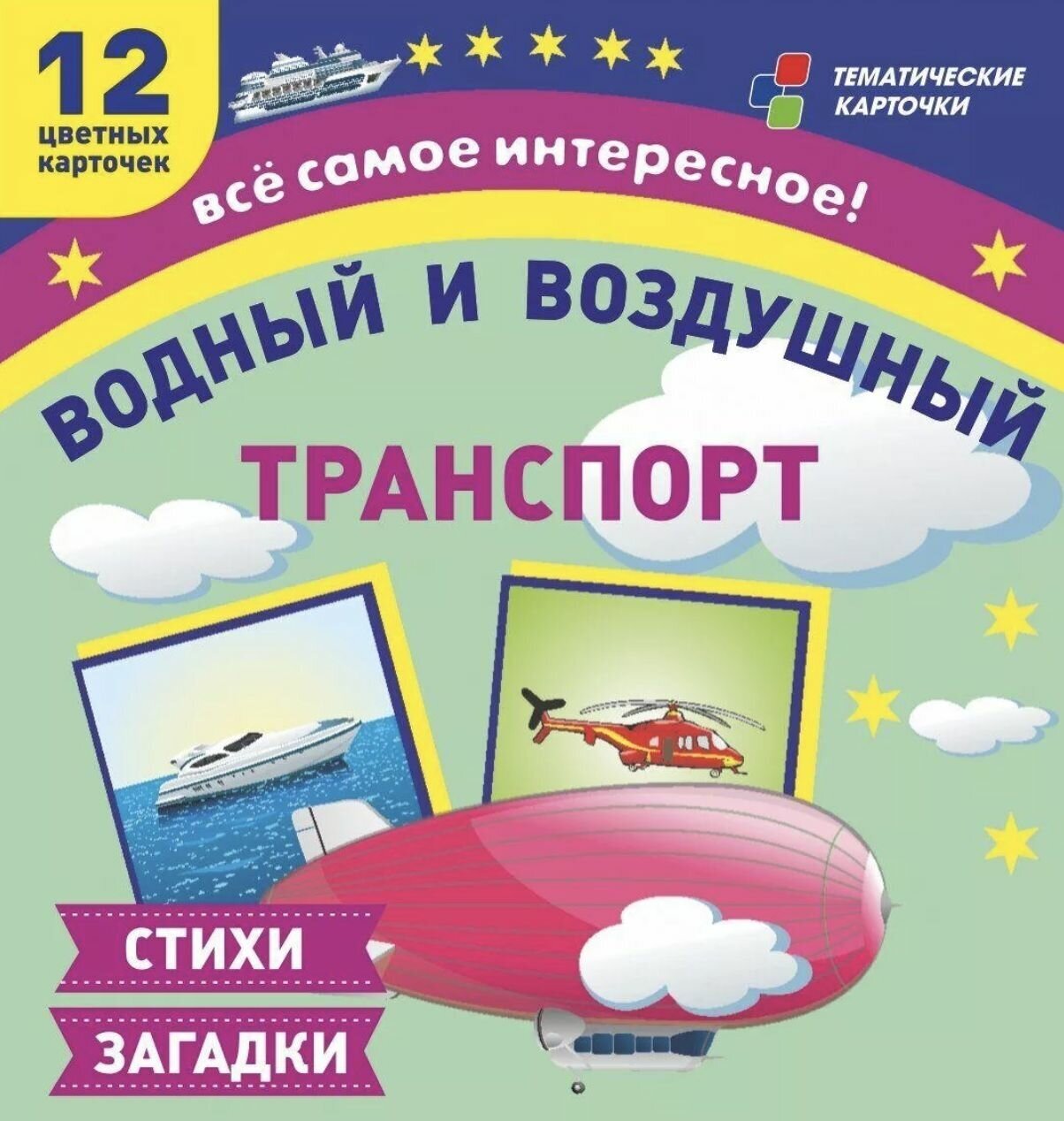 Водный и воздушный транспорт. 12 развивающих карточек с красочными картинками и загадками. ФГОС ДО Учитель