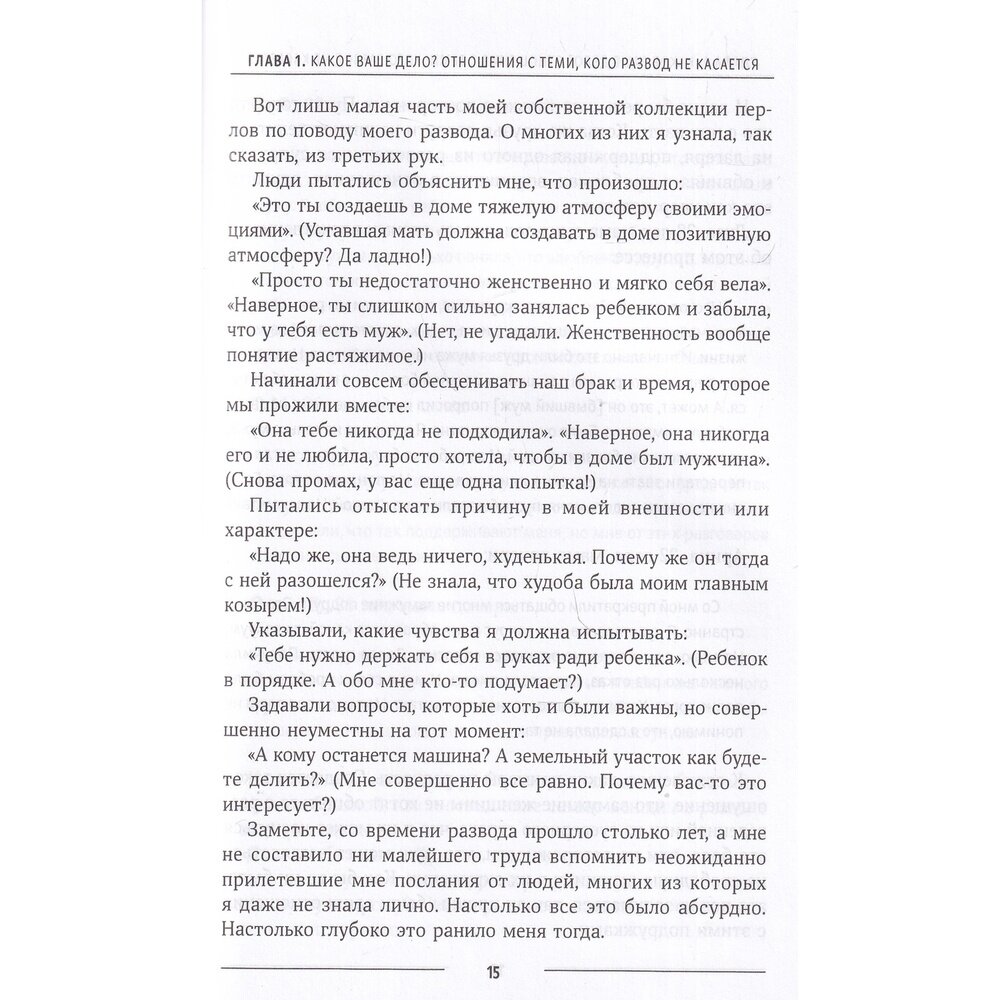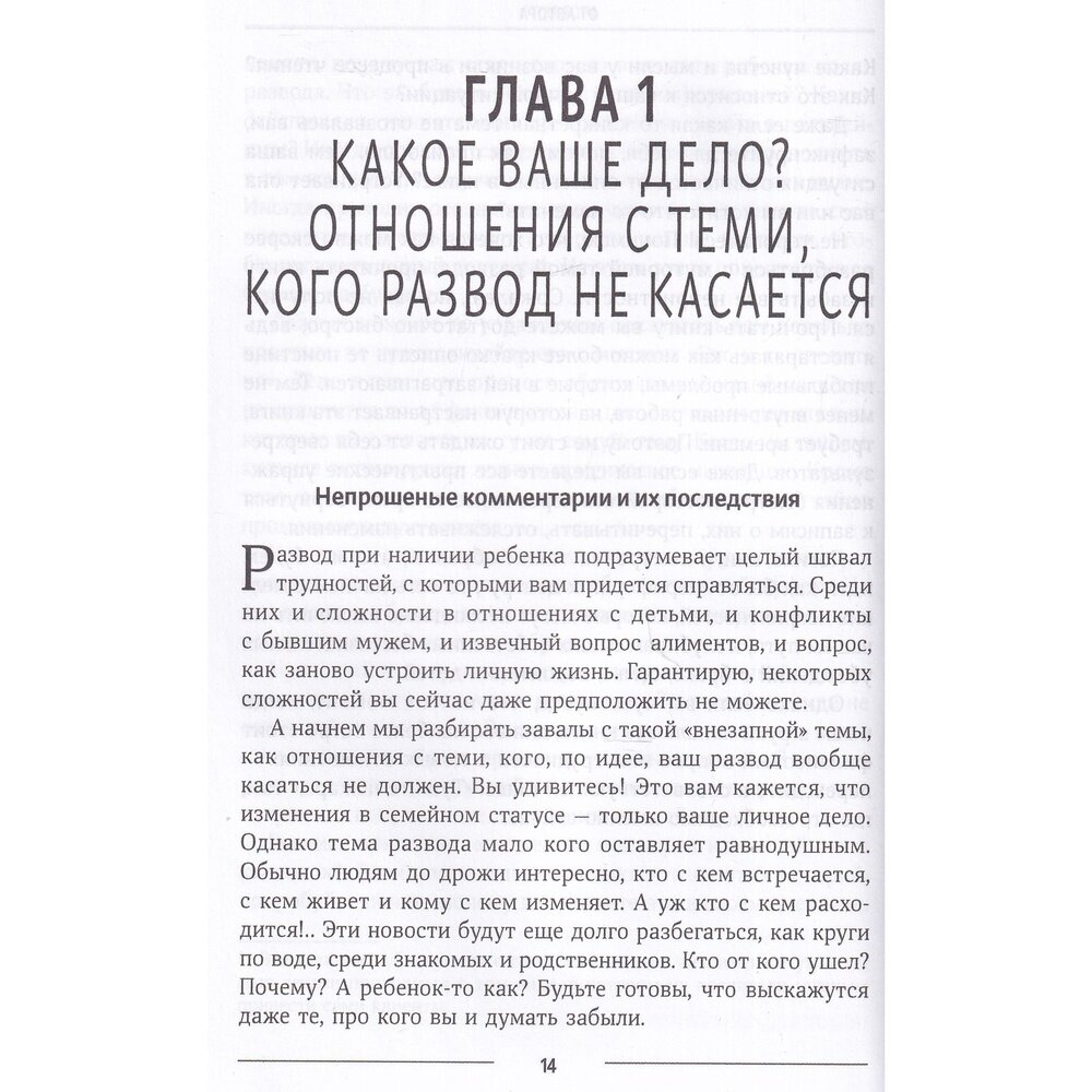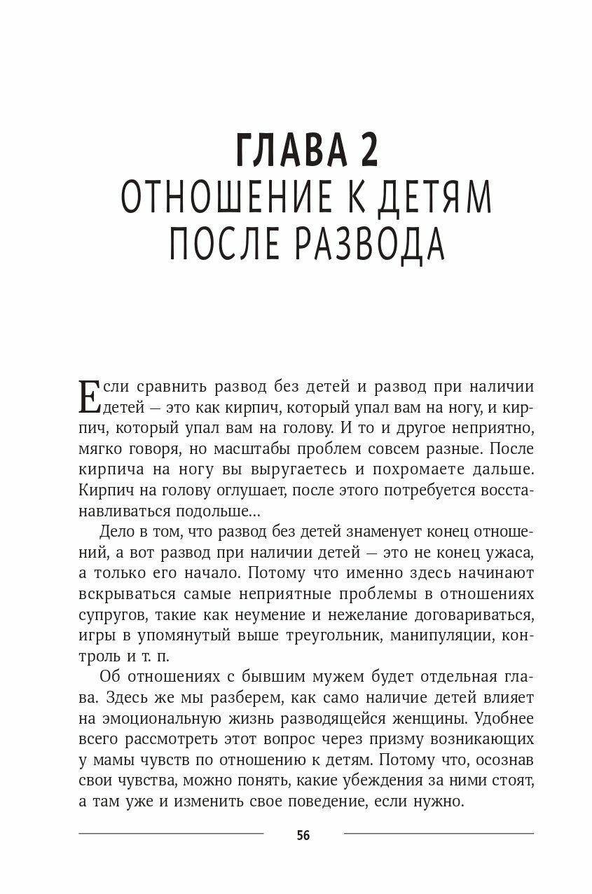 Каковы психологические последствия развода для женщины, как ей излечить свои душевные травмы, поднять разрушенную самооценку, морально поддержать ребенка, безболезненно общаться с окружающими и бывшим мужем, выстроить новые отношения, рассказывается в этой книге, обобщающей опыт автора в консультировании женщин с детьми после развода.