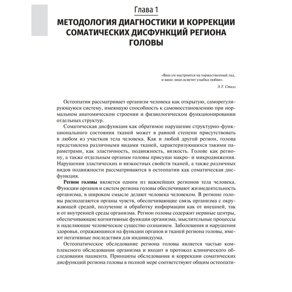 В нем приведена информация по методологии остеопатического обследования, биомеханике костей черепа, анатомо-физиологическим особенностям региона головы. Данный том представляет собой синтез теоретических знаний и практических рекомендаций, определяющих базовую подготовку по специальности "Остеопатия" в области остеопатической диагностики и коррекции соматических дисфункций региона головы и твердой мозговой оболочки.