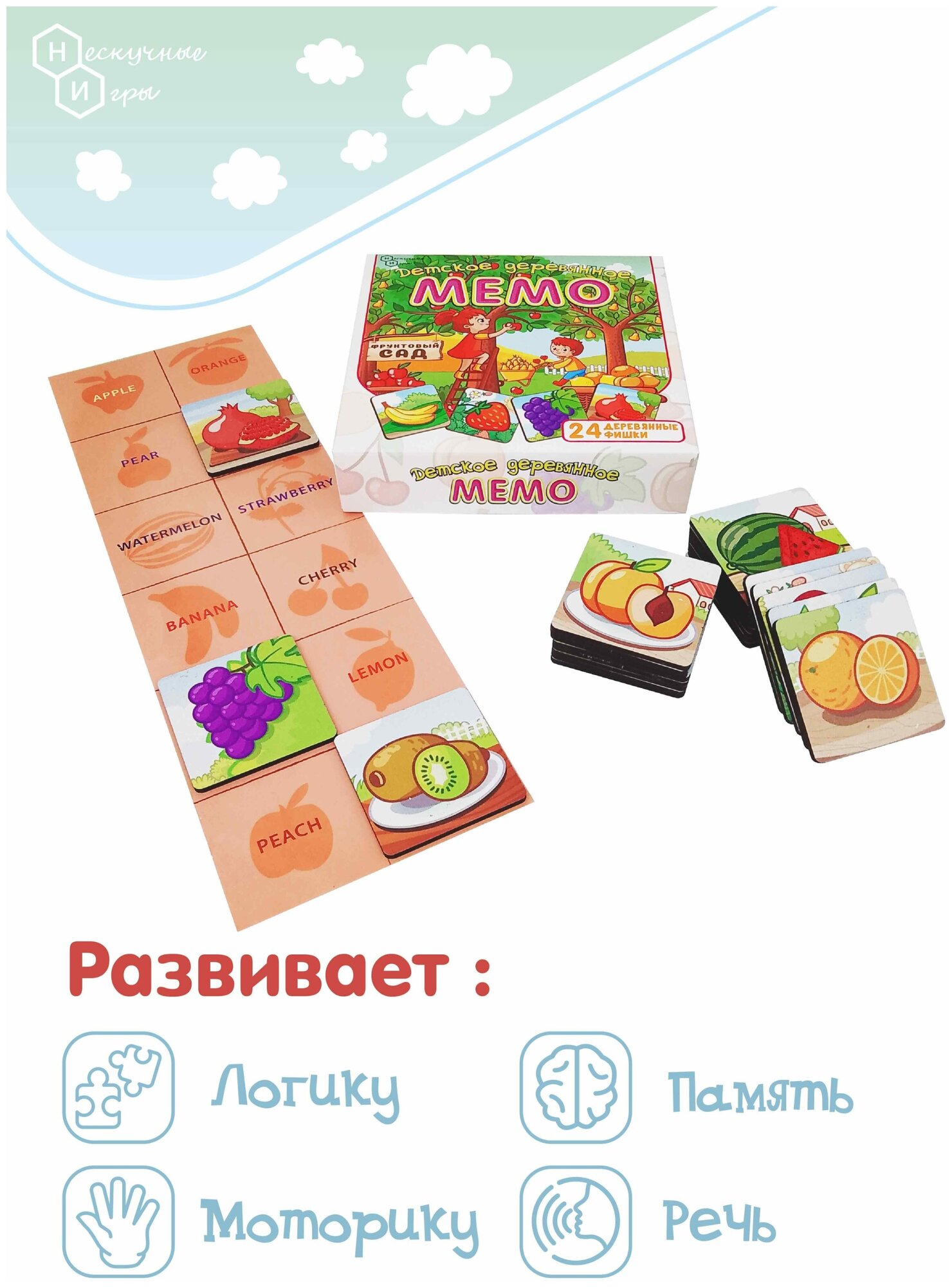 Мемо деревянное Фруктовый сад 24 детали Нескучные игры Мемо Фруктовый сад