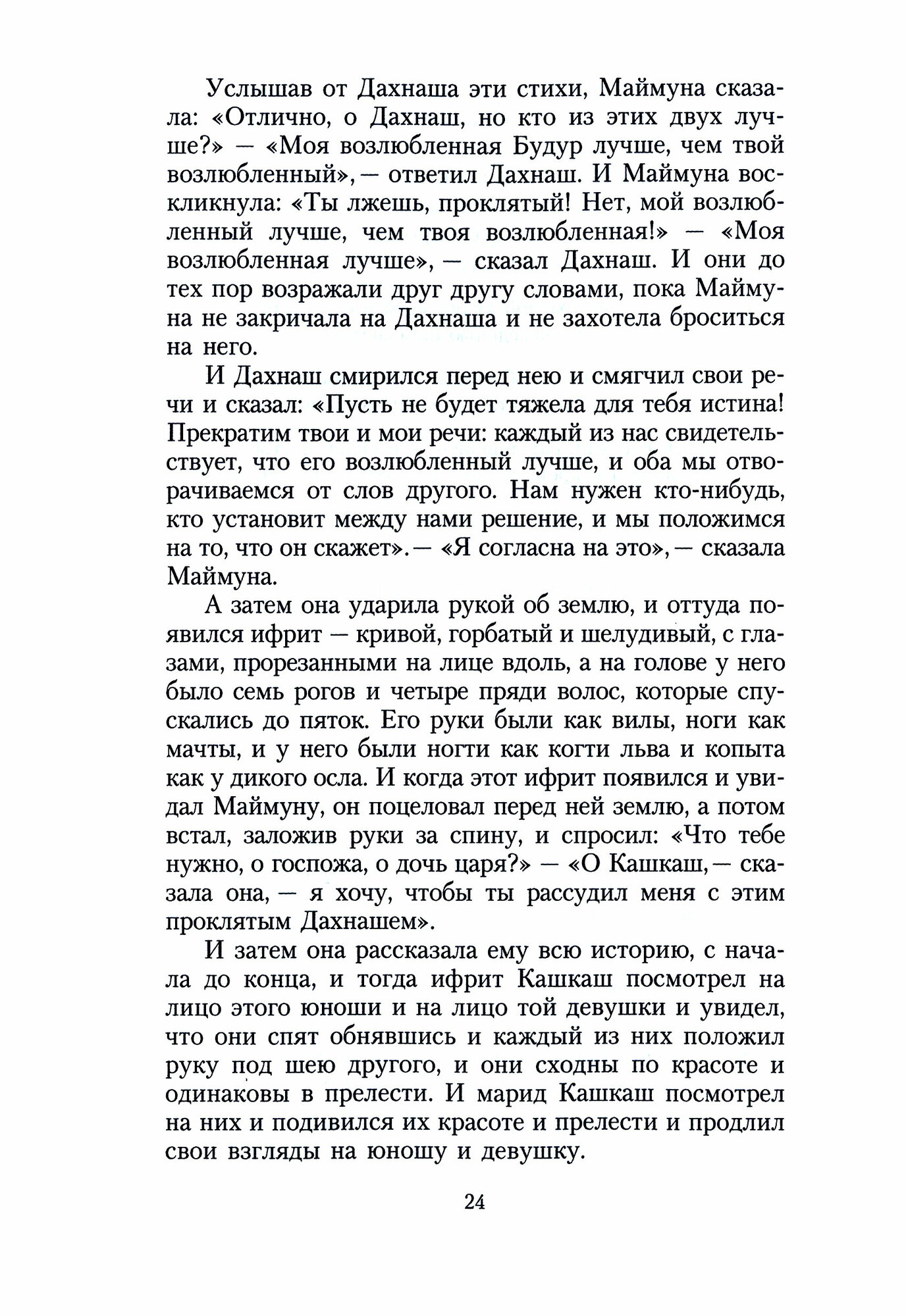 "Тысяча и одна ночь" - сборник сказок на арабском языке, рассказанных жестокому царю Шахрияру прекрасной Шахразадой. Эти сказки не имеют определенного авторства, они собирались в сборники на протяжении веков и тематически объединяют самые различные сюжеты - от нравоучительных, религиозных, волшебных до бытовых и плутовских. Вошедшие в эту книгу сказки из собрания "Тысячи и одной ночи" поведают читателю о страшных и загадочных происшествиях, неожиданным образом изменивших судьбы царевны Будур и ее возлюбленного Камар аз-Замана, добросердечного Али-бабы, его жадного брата Касима и обретших ужасный конец сорока разбойников.