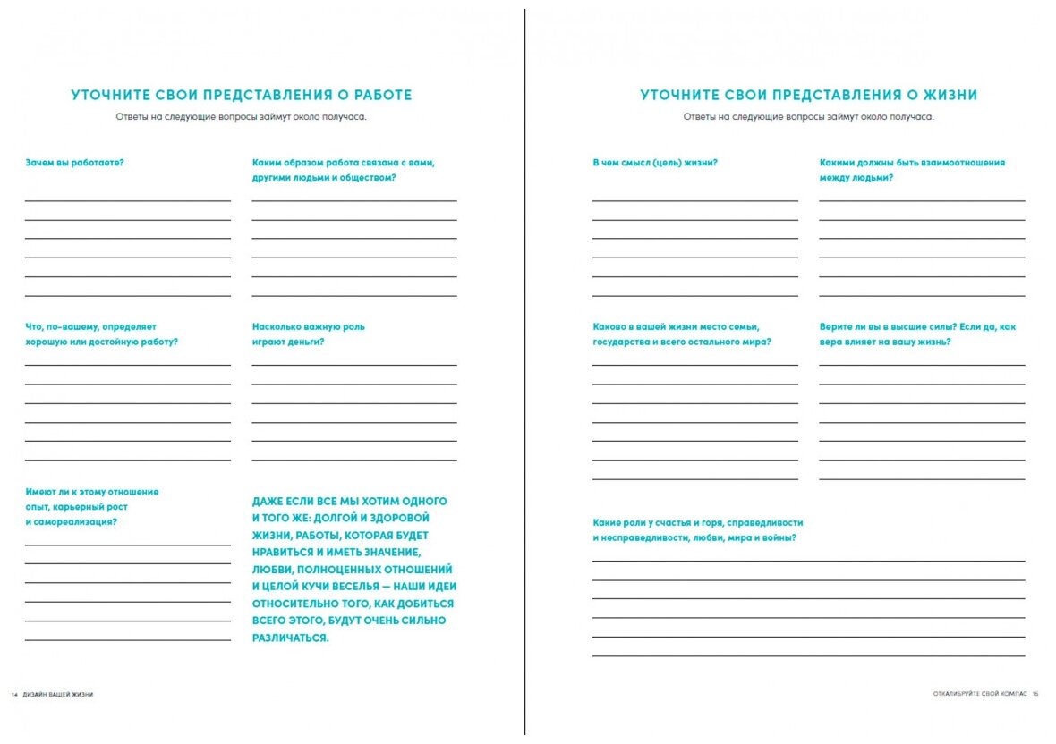 Интересный познавательный воркбук. И, думаю, реально полезный. «Дизайн вашей жизни», на который ссылаются авторы, не читала, но уже хочу приобрести. Заполнять приятно и несложно. Ношу с собой, он не тяжелый, хоть и довольно большой по размеру. Удобно вписывать, строчки достаточно широкие, это большой плюс. Я пишу карандашом, статраюсь не нажимать. Иногда всерьёз задумываюсь над ответами, даже переписываю что-то. Но стирается тоже хорошо, бумага плотная))) Спасибо авторам и издателям. Становлюсь дизайнером моей жизни, да.