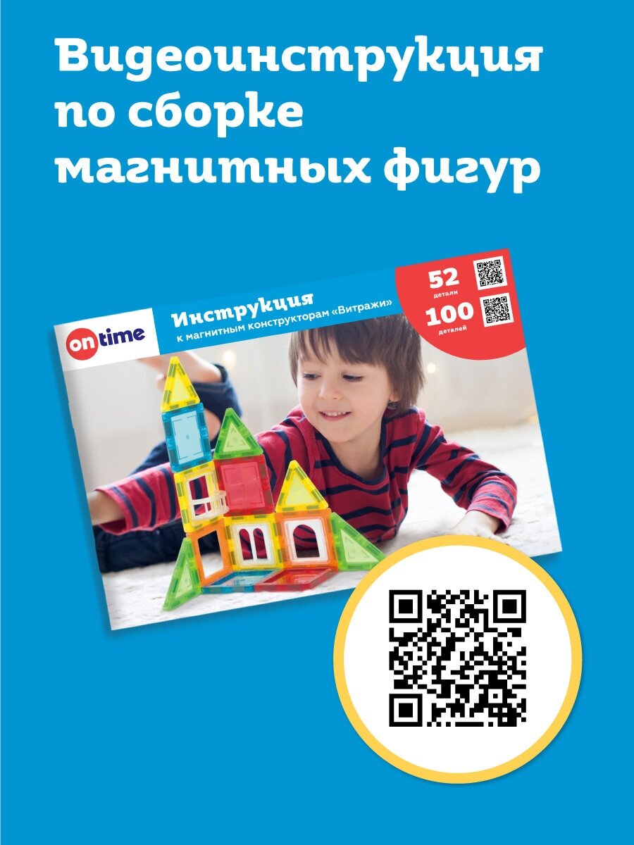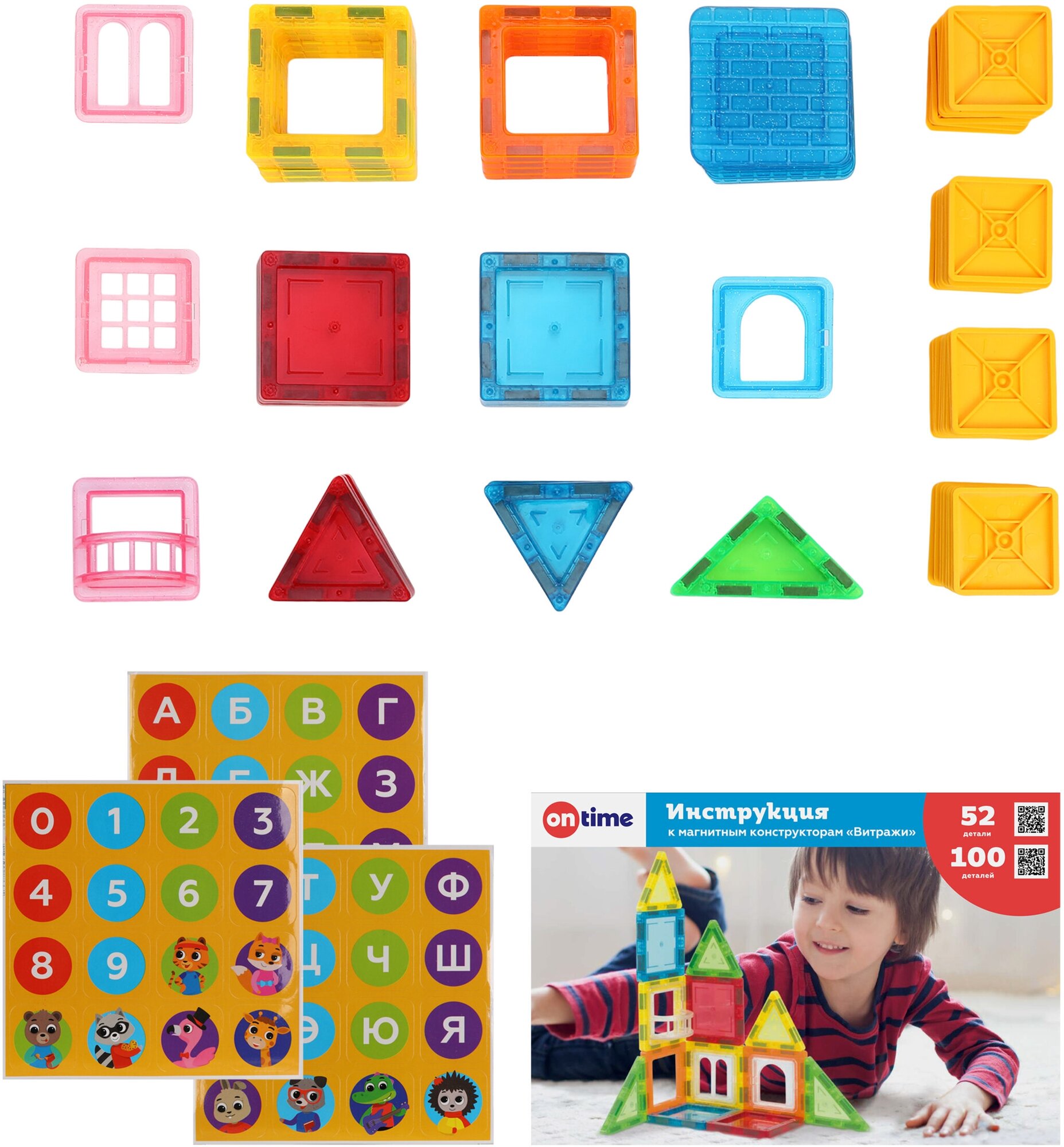 Магнитный конструктор OnTime "Витражи" 52 детали 48 наклеек арт.45008