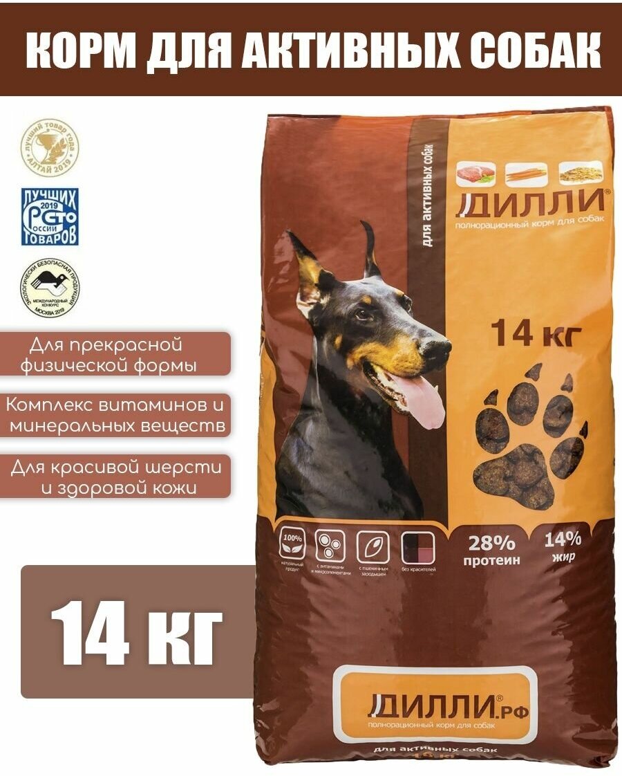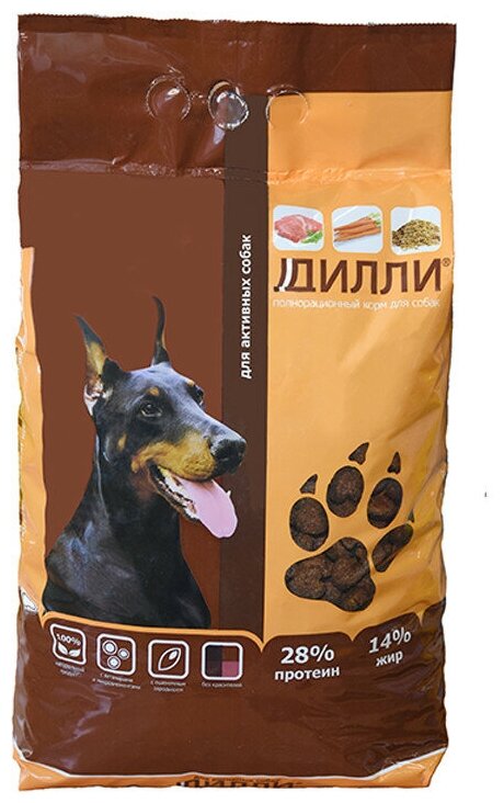 Сухой корм для собак Дилли для активных полнорационный 1 кг Для активных собак