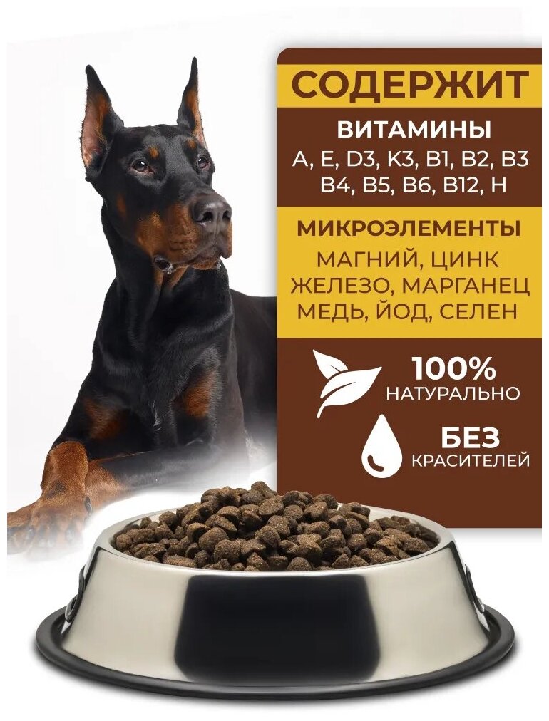 Рецептура корма разработана для взрослых активных собак, испытывающих повышенную физическую нагрузку, для охотничьих собак, собак, участвующих в выставках и, возможно, подверженных стрессу. Соответствующая энергетическая ценность и состав компонентов способствуют эффективному обмену веществ, поддерживанию прекрасной физической формы и быстрому восстановлению сил вашего питомца. Размер крокета - 15 мм