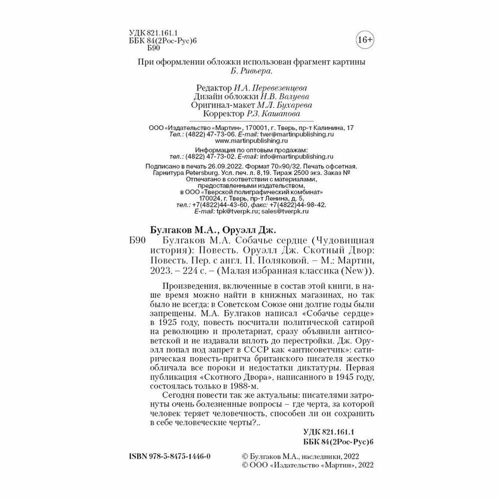 Собачье сердце. Скотный двор (Булгаков Михаил Афанасьевич; Оруэлл Джордж); Мартин, 2023