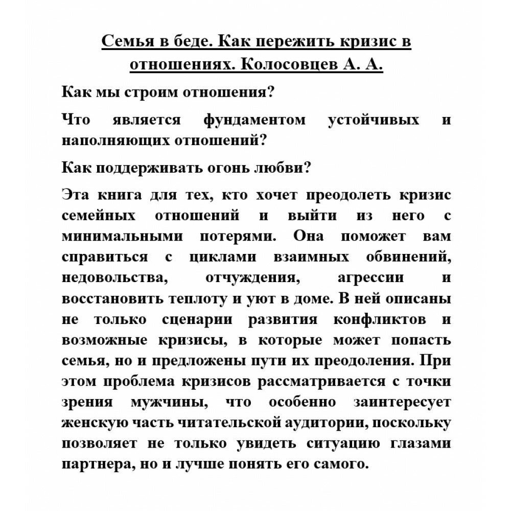 Сервис сравнения цен СкидкаГИД предлагает сравнить цены на товар «Книга: Семья в беде Как пережить кризис в отношениях (Андрей Колосовцев); Питер (Айлиб), 2022»