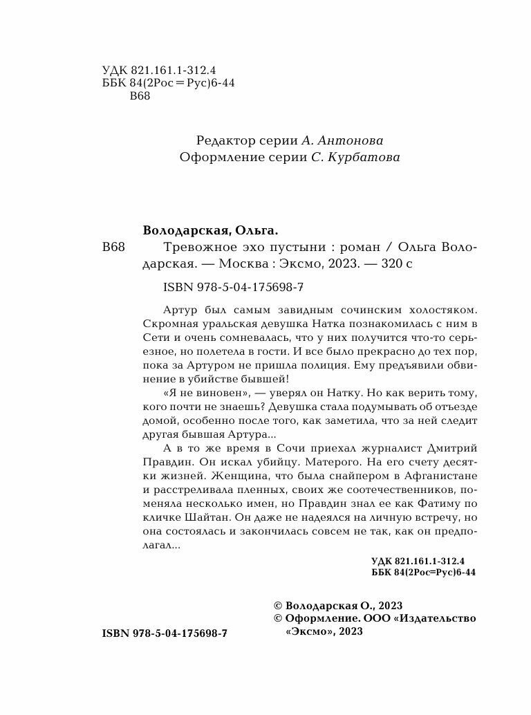 Книга: Тревожное эхо пустыни (Володарская Ольга Геннадьевна); ООО "Издательство "Эксмо", 2023