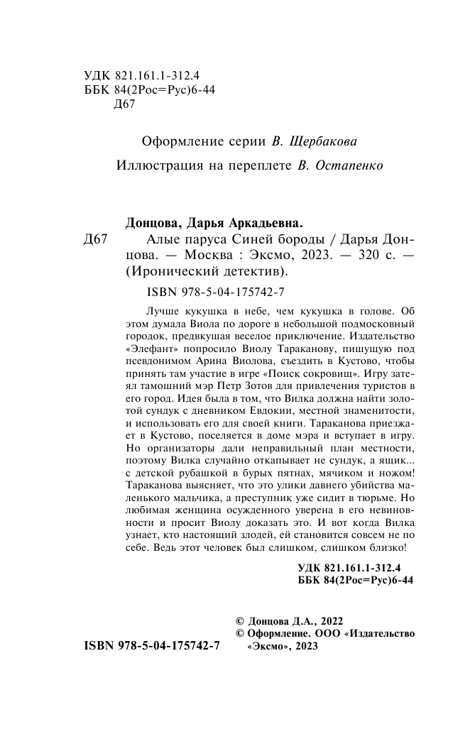 Сервис сравнения цен СкидкаГИД предлагает сравнить цены на товар «Книга: Алые паруса Синей бороды (Донцова Дарья Аркадьевна); ООО "Издательство "Эксмо", 2023»