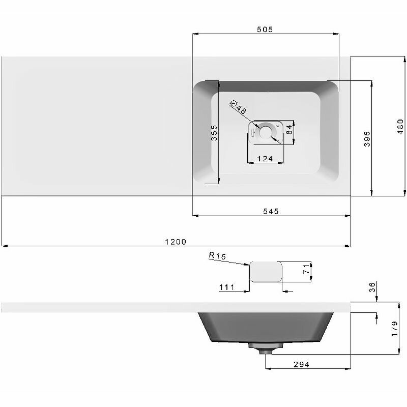 Размеры 120х48 см — удобно мыть посуду и большую кастрюлю.