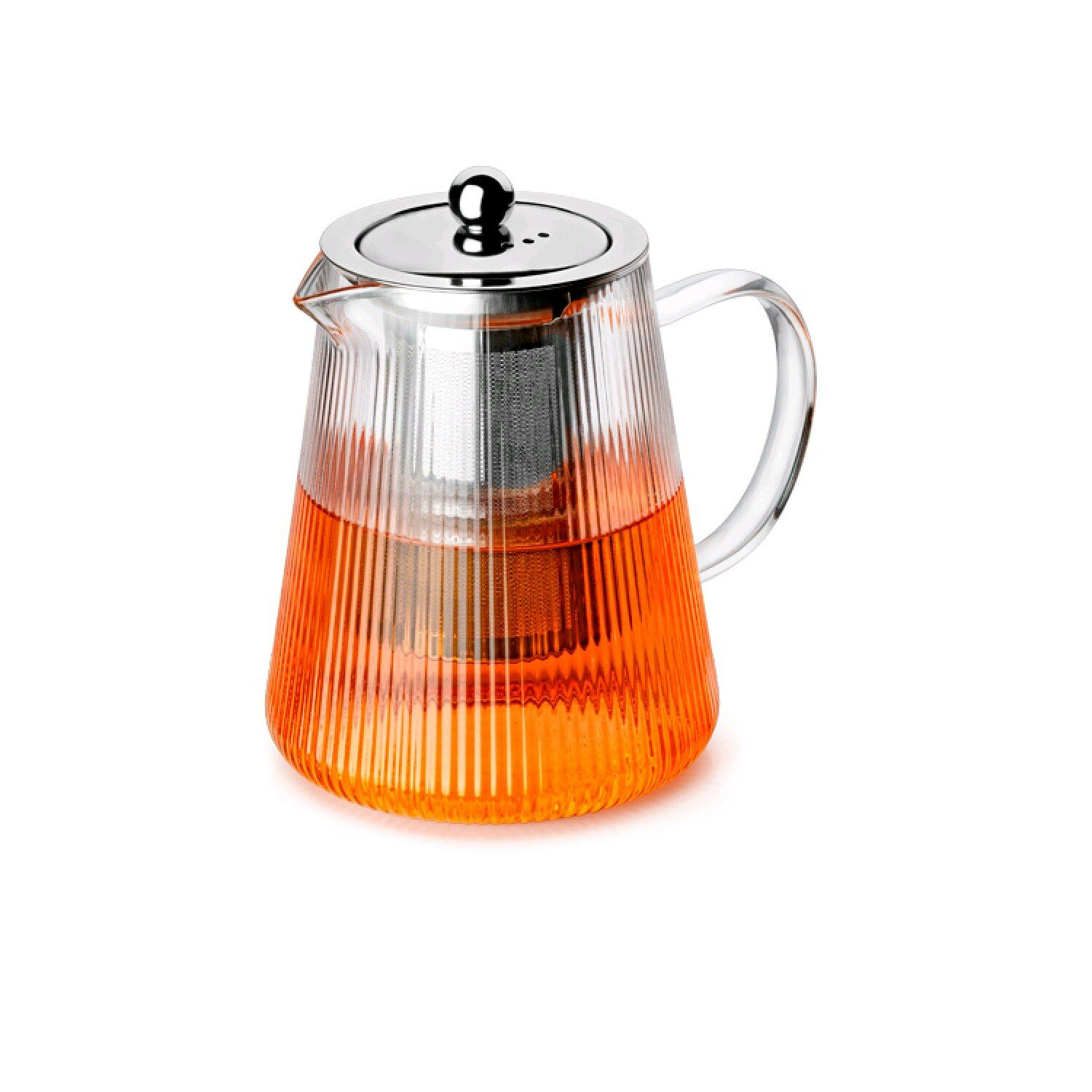 В комплекте: заварочный чайник;Объем: 750 мл;Материал изготовления: боросиликатное стекло, нержавеющая сталь 304;Рекомендации по уходу: колбу можно мыть в ПММ;Погрузитесь в мир удивительных напитков с заварочным чайником APOLLO "Stripe-type". Изготовленный из жаропрочного стекла, этот чайник подходит для приготовления традиционного, травяного и фруктового чая, а также кофе и какао.Оригинальное рифленое стекло делает его не только практичным, но и визуально привлекательным. Уникальный вид гармонично дополнит интерьер, будь то небольшая кухня или просторная столовая в загородном доме.Универсальный дизайн подходит как для повседневного использования, так и для особых случаев. С ним вы можете готовить ароматные напитки в любое время года.Чайник оснащен стальной вставкой – фильтром из нержавеющей стали, обеспечивая комфортное заваривание. Крышка надежно фиксируется, а специальные отверстия позволяют пару выходить. Ручка из стекла не нагревается, обеспечивая безопасность использования.Наслаждайтесь уютными чаепитиями вместе с APOLLO!