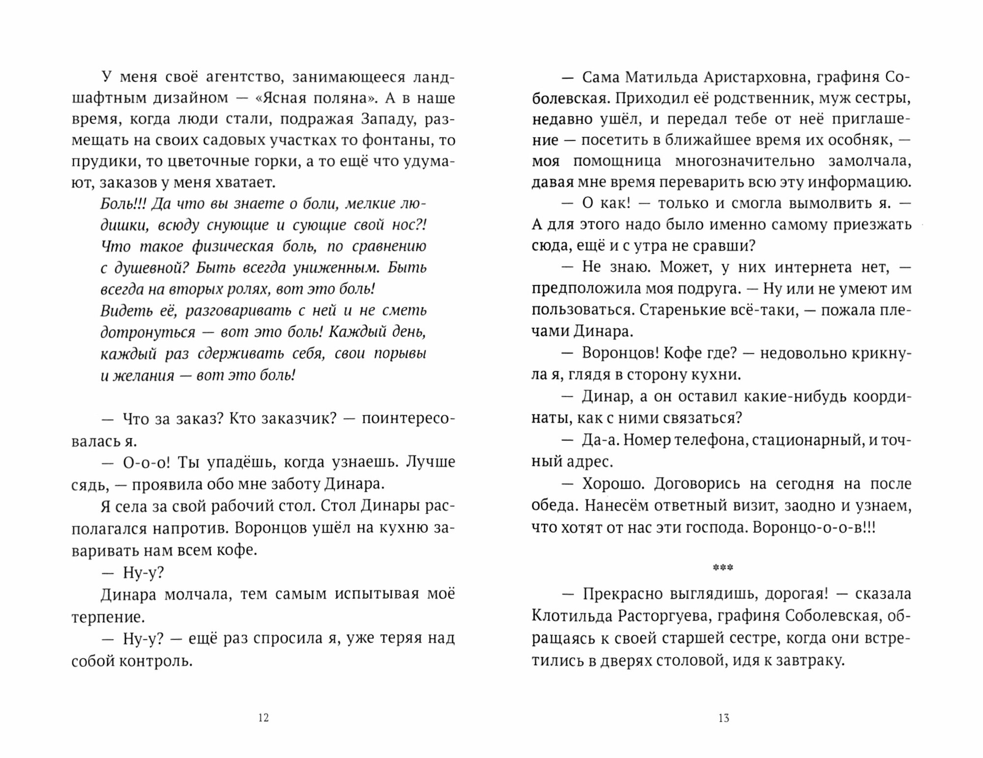 Агентство "Ясная поляна" получает интересный заказ на ландшафтный дизайн в старинной родовой усадьбе, где проживают три сестры, графини Соболевские. Владелица агентства Наталья Радужная и её друг и помощник, Никита Воронцов, отправляются в особняк, чтобы обсудить детали работы, и неожиданно для себя соглашаются погостить в усадьбе.
