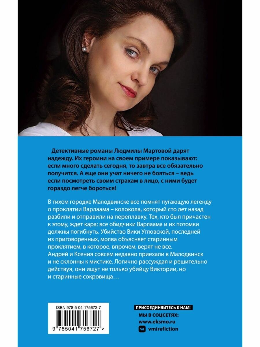 В тихом городке Малодвинске все помнят пугающую легенду о проклятии Варлаама - колокола, который сто лет назад разбили и отправили на переплавку. Тех, кто был причастен к этому, ждет кара: все обидчики Варлаама и их потомки должны погибнуть. Убийство Вики Угловской, последней из приговоренных, молва объясняет старинным проклятием, в которое, впрочем, верят не все. Андрей и Ксения совсем недавно приехали в Малодвинск и не склонны к мистике. Логично рассуждая и решительно действуя, они ищут не только убийцу Виктории, но и старинные сокровища…