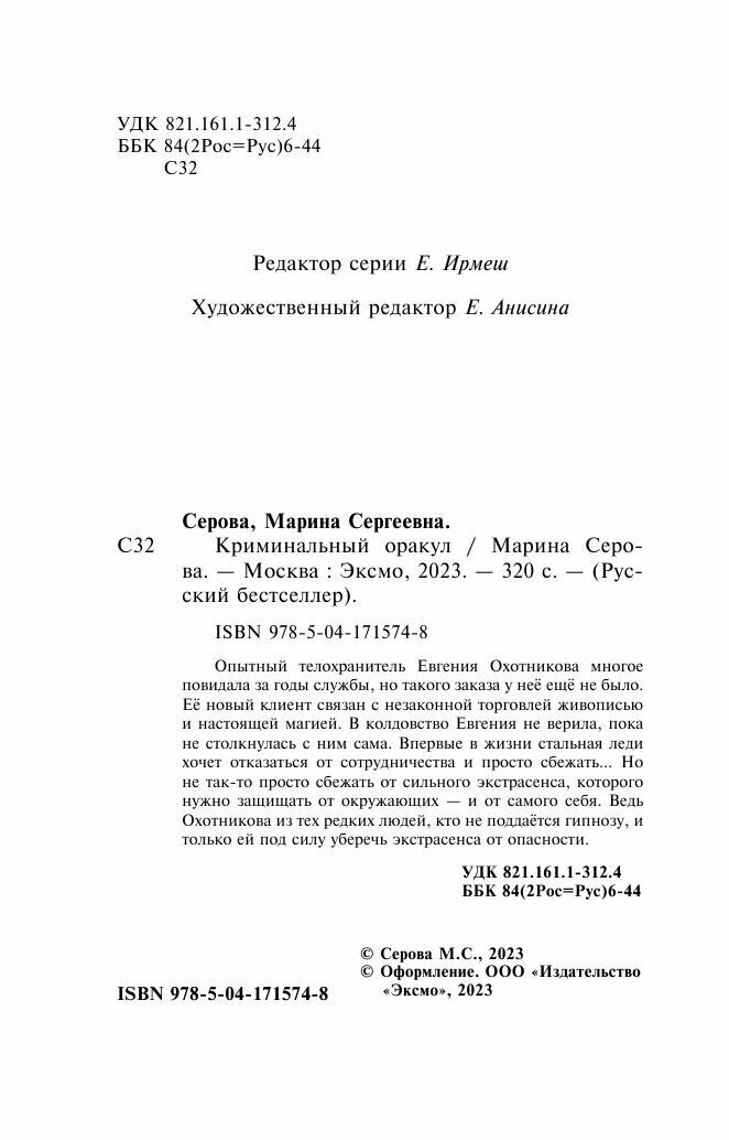 Книга: Криминальный оракул (Серова Марина Сергеевна); ООО "Издательство "Эксмо", 2023