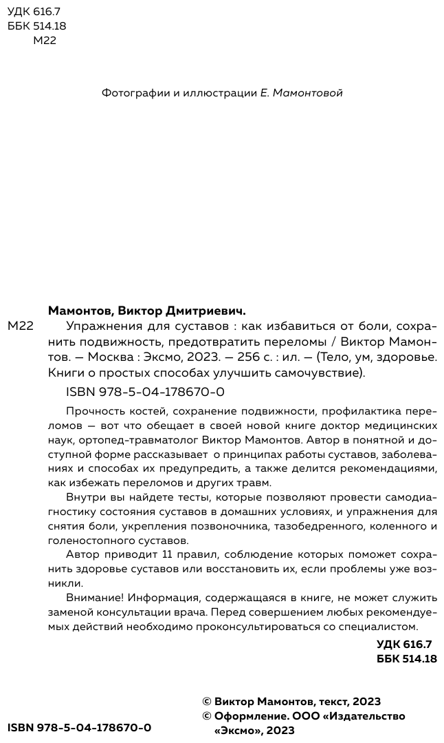 Упражнения для суставов Как избавиться от боли сохранить подвижность предотвратить переломы (Мамонтов Виктор Дмитриевич); ООО "Издательство "Эксмо", 2023