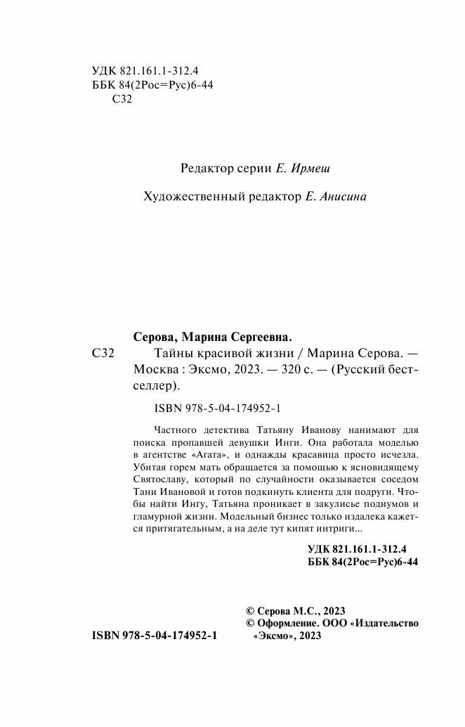 Книга: Тайны красивой жизни (Серова Марина Сергеевна); ООО "Издательство "Эксмо", 2023