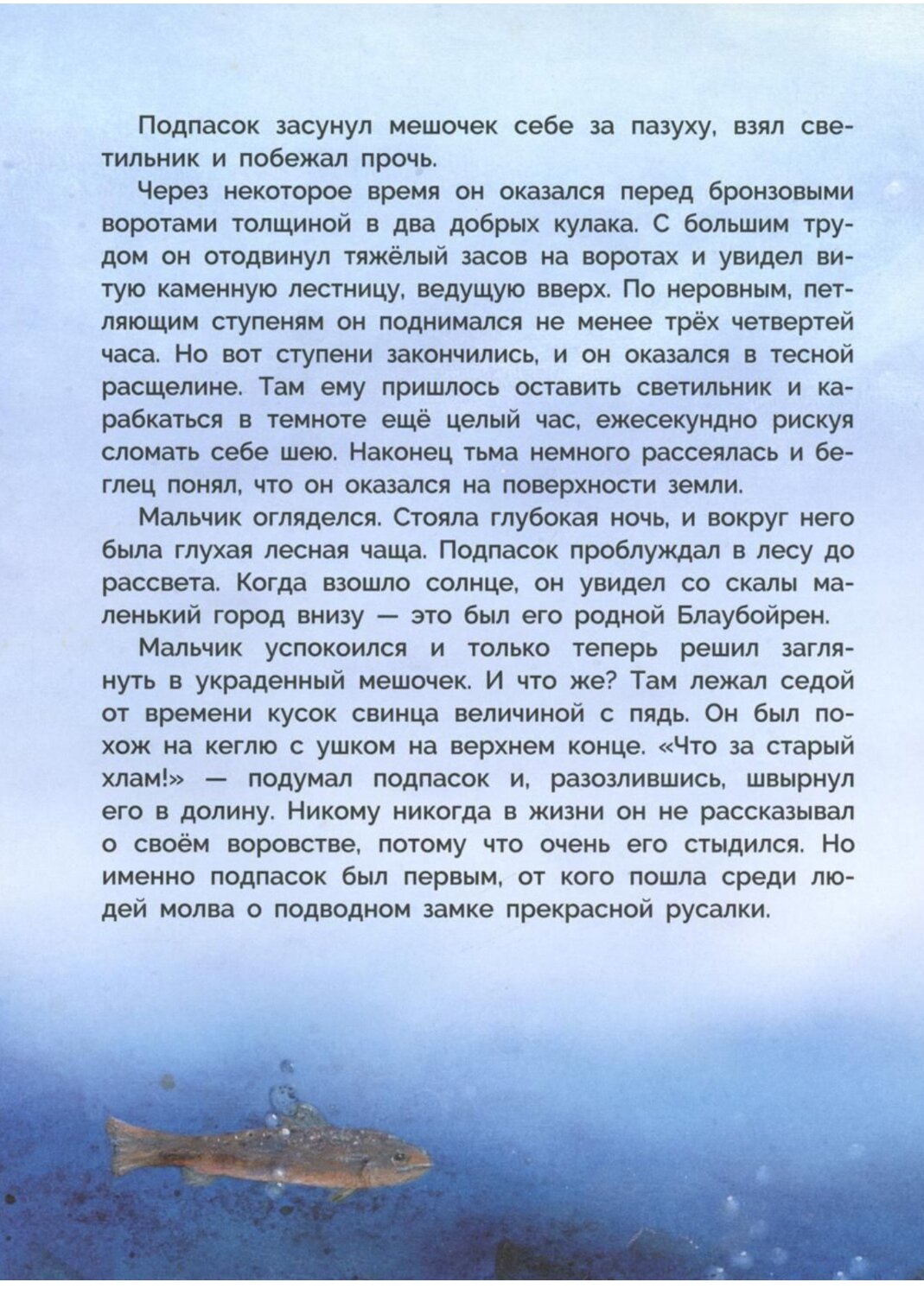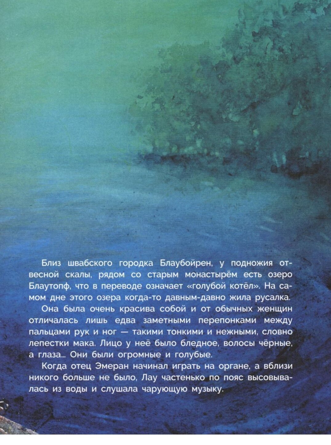 В XIX веке эту романтичную историю записал известный немецкий писатель и поэт Эдуард Мёрике (1804-1875), и с тех пор она стала популярной не только в Швабии, но и во всей Германии. А теперь и вы сможете познакомиться со сказкой о прекрасной русалке и заглянуть в её чудесный, таинственный мир благодаря волшебным иллюстрациям Даниэлы Дрешер.