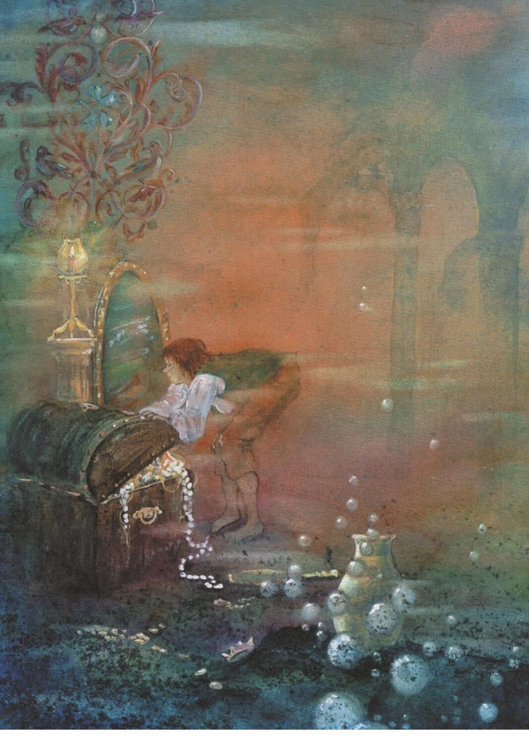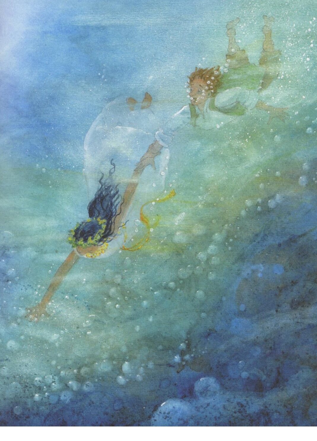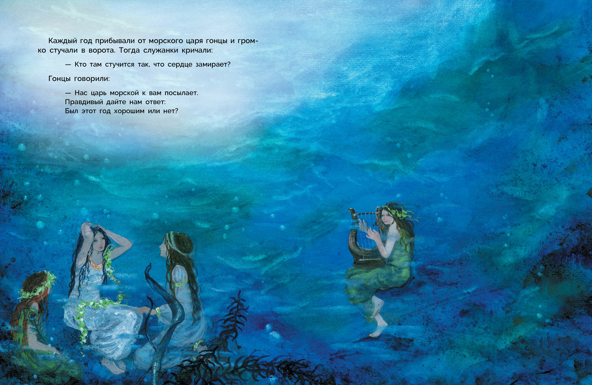 Я обожаю сказку Андерсена \"Русалочка\" с детства. Так что авторские сказки, связанные с русалками, уважаю и стараюсь покупать. А тем более с такими изумительными иллюстрациями Дрешер. Прекрасный морской форзац, иллюстрации в основном на разворот, поэтому текст идёт поверх. Смотрится потрясающе. Восхитительные таинственные морские пейзажи, яркие и теплые земные - контраст хороший.