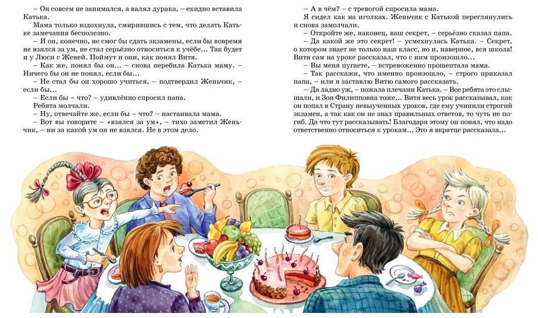 Это вторая часть приключений Вити. Он снова возвращается в страну невыученных уроков и нас ждет масса приключений. Мой ребенок смотрел мультик и захотел прочитать книгу. Я остановилась именно на этой серии и заказала все три части сразу. Из данной серии у нас много книг, поэтому в высоком качестве я была уверена. Много ярких иллюстраций, крупный, четкий шрифт. Листы плотные и белые. Книги замечательные.