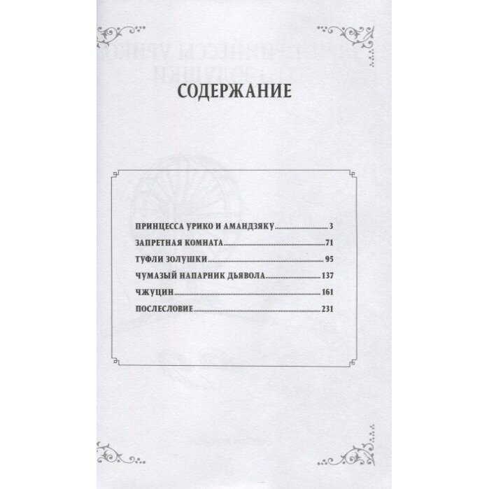 Авторское послесловие: В прошлом я уже рисовал мангу по мотивам сказок братьев Гримм. Она была опубликована в двух томах: первый, "Госпожа Труде", вышел в издательстве "Асахи Сонорама", второй, "Белоснежка", был опубликован "Токио Согэнся". С тех пор прошло семь лет. В тот момент я решил, что с меня достаточно фантазий в духе Гримм, однако собрание сказок и народных преданий, ставшее делом всей их жизни, не собиралось так просто меня отпускать. Моя рука сама собой начала рисовать "Золушку", и эта прекрасная сказка превратилась у меня в историю о девушке, спасающейся от проклятия туфель. Во время работы я постоянно размышлял о том, может ли брак Золушки с одержимым обувным фетишем принцем быть счастливым. Отдельно стоит отметить весьма необычный рассказ "Чумазый напарник дьявола". Причиной его вычурности является мое давнишнее желание воплотить в жизнь сюжет на тему дружбы между дьяволом и простым смертным. В то же самое время меня заинтересовали японские сказки, и я решил отобрать те из них, на основе которых можно было нарисовать мангу. Начав публиковаться в журналах "Nemuki" и "Nemuki+", я принялся рисовать истории, которые мне были по душе в тот момент, не отбирая для работы только западные или японские сюжеты.