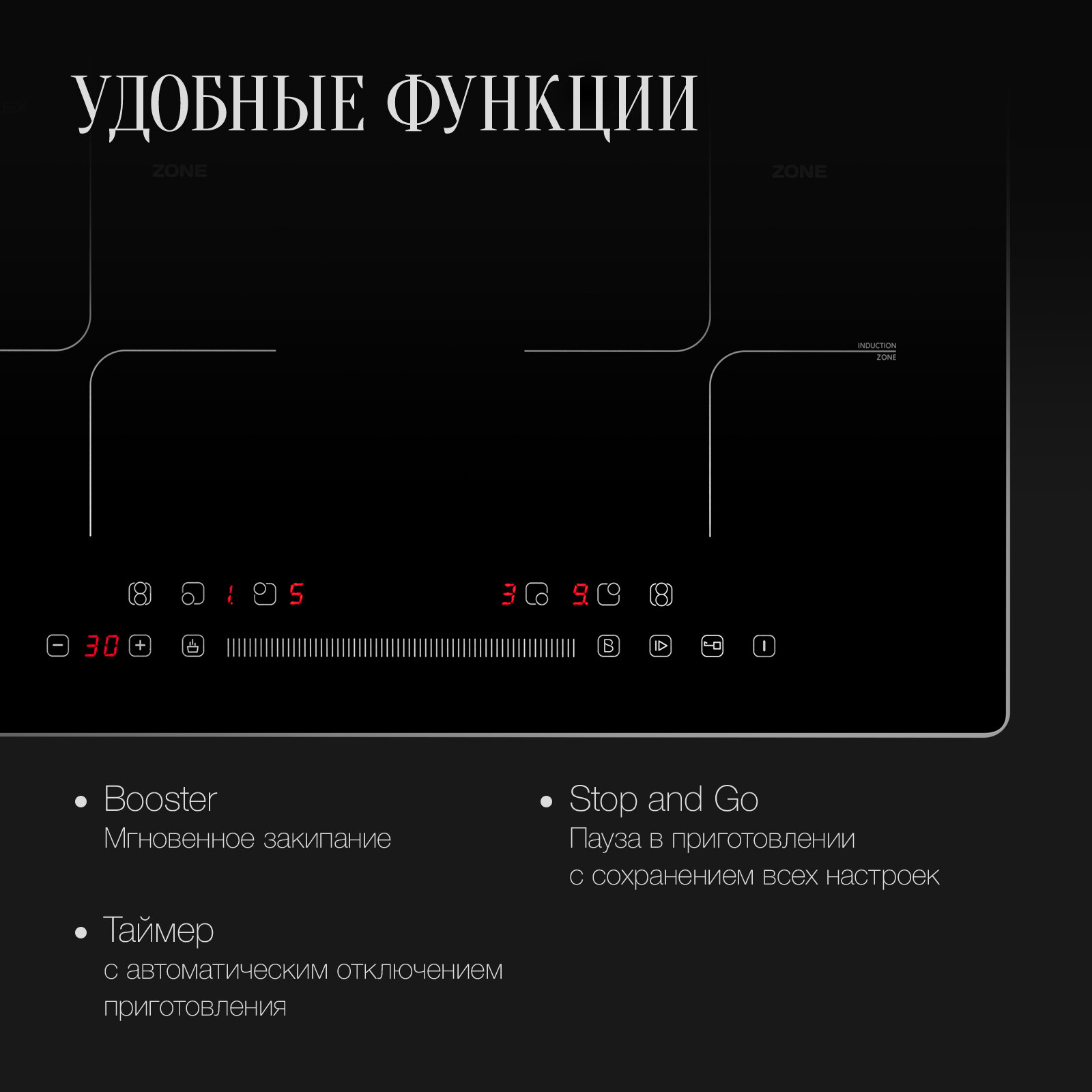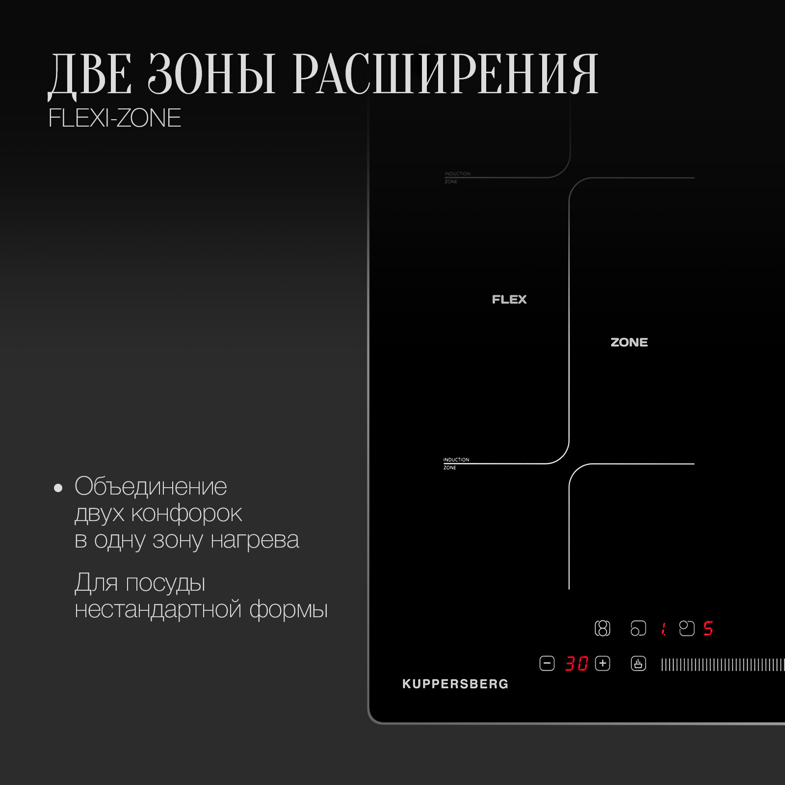 | Расширение зоны нагрева конфорок | индукционный мост |