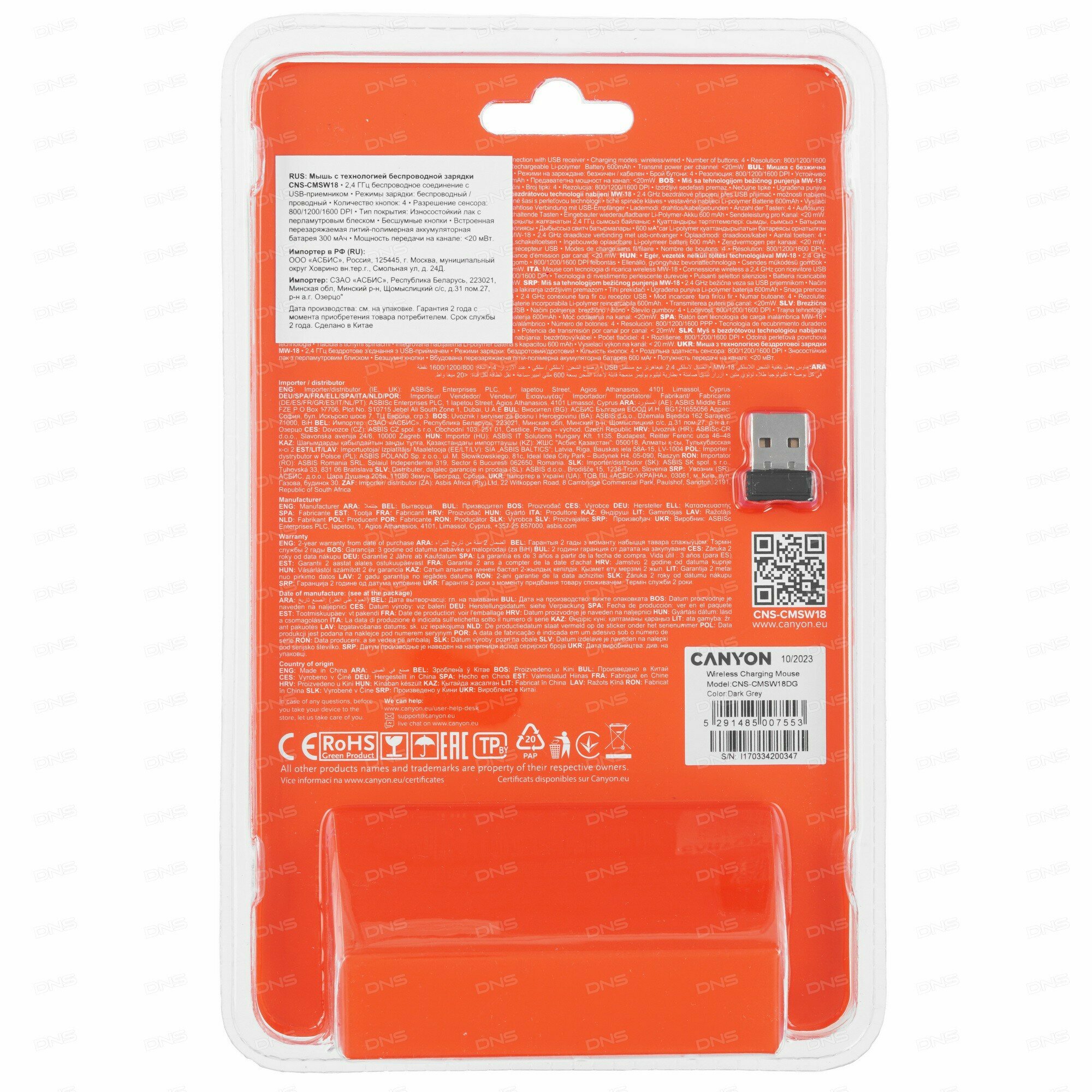 - Беспроводная перезаряжаемая мышь с бесшумными кнопками Canyon MW-18