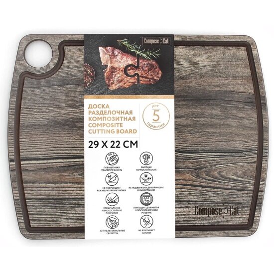 Доска разделочная с желобом ComposeEat 29х22см дуб мореный Fashion DRJ2902250634KL6 (размер: 29х22х6)