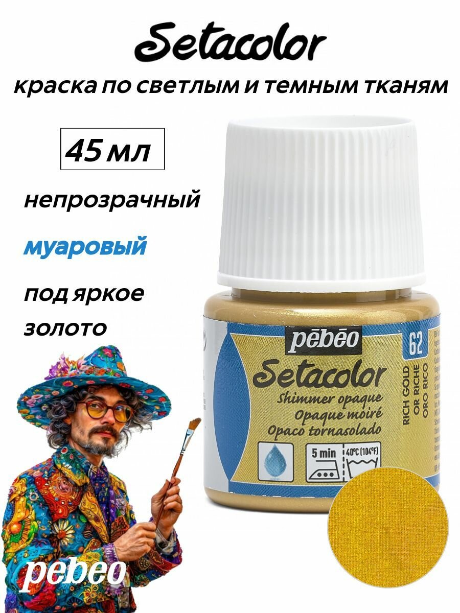 Краска для темных и светлых тканей мерцающая Pebeo "Setacolor Opaque" 45 мл под яркое золото (295-062)
