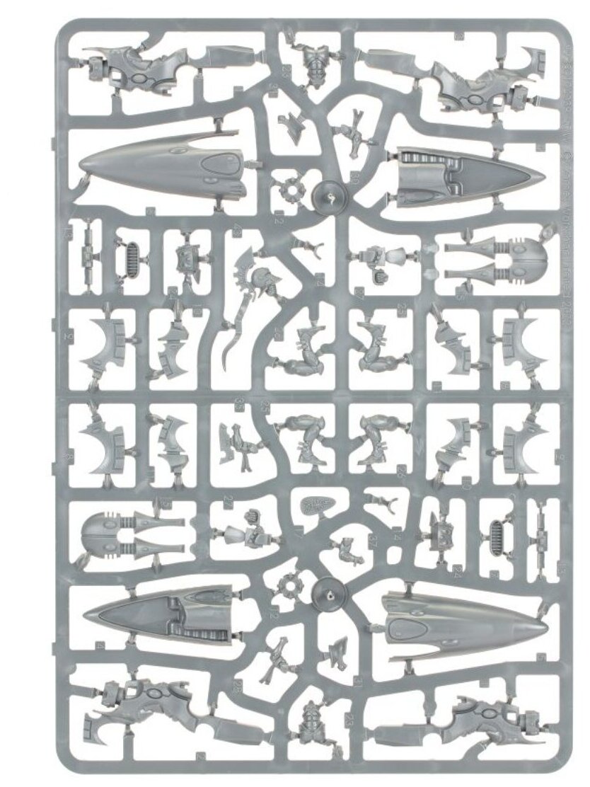 Благородные герои на ретивых скакунах – известные персонажи в мифологии Альдари (Aeldari). Сверкающие Копья (Shining Spears) – настоящее олицетворение древних легенд. Смысл жизни этих Воинов Аспекта (Aspect Warriors) в вечном соревновании. Гордые наездники принимают любые вызовы на манёвренных джетбайках, набирая огромную скорость и поражая врагов при помощи длинных лазерных пик. Они создают разряды невероятной мощи, прожигая броню, прежде чем врезаться во врага с невероятной силой!В данном наборе содержатся 84 компонента, необходимых для сборки трёх Сияющих Копий с лазерными пиками и верхом на джетбайках с двумя сюрикеновыми орудиями. Одну модель можно собрать в качестве Экзарха Сияющих Копий (Shining Spears Exarch), вооружённого звёздным копьём или парагонной саблей, а также сияющим щитом. Каждая модель обладает рядом дополнительных вариантов сборки.В комплект включены три 60-миллиметровые подставки, каждая с двумя штырями. Обратите внимание! Миниатюры в коробке поставляются не собранными и не покрашенными. Инструкция по сборке входит в набор. Для сборки рекомендуем использовать специальные инструменты и клей, а окрашивать миниатюры высококачественными акриловыми красками.
