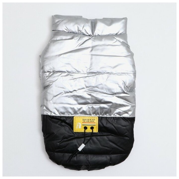 Куртка для собак Космонавт, размер 14, чёрно-серебряная (ДС 38, ОШ 32, ОГ 46 см)Стильная куртка для собак мелких и средних пород из водоотталкивающей блестящей ткани. Куртка удобная и комфортная, не стесняет движений. Внутренний слой набитый синтепоном, который надёжно согревает и обеспечивает воздухообмен. Ткань плотная, защищает от холода, грязи и влаги, сохраняя тепло. Куртка имеет резинку-утяжку на поясе. Фиксируется кнопками по животу. Эта удобная куртка, придётся по вкусу даже самым требовательным питомцам. Модель унисекс.