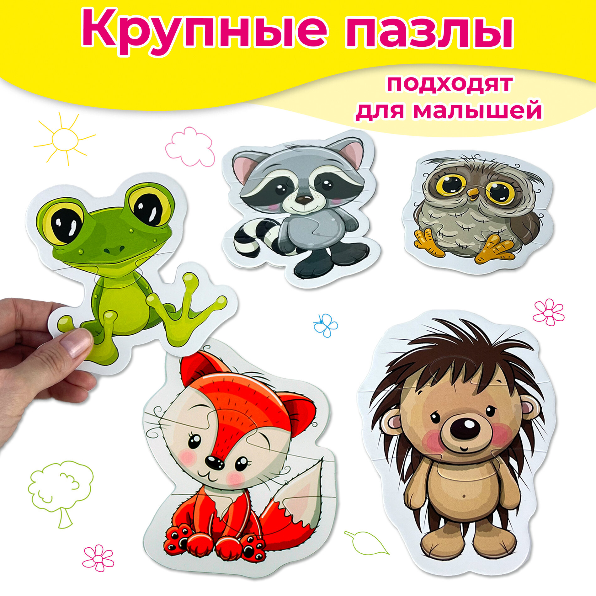 Крупные пазлы подходят для самых маленьких и помогут разнообразить занятия с ребёнком, сделать их интересными и полезными.