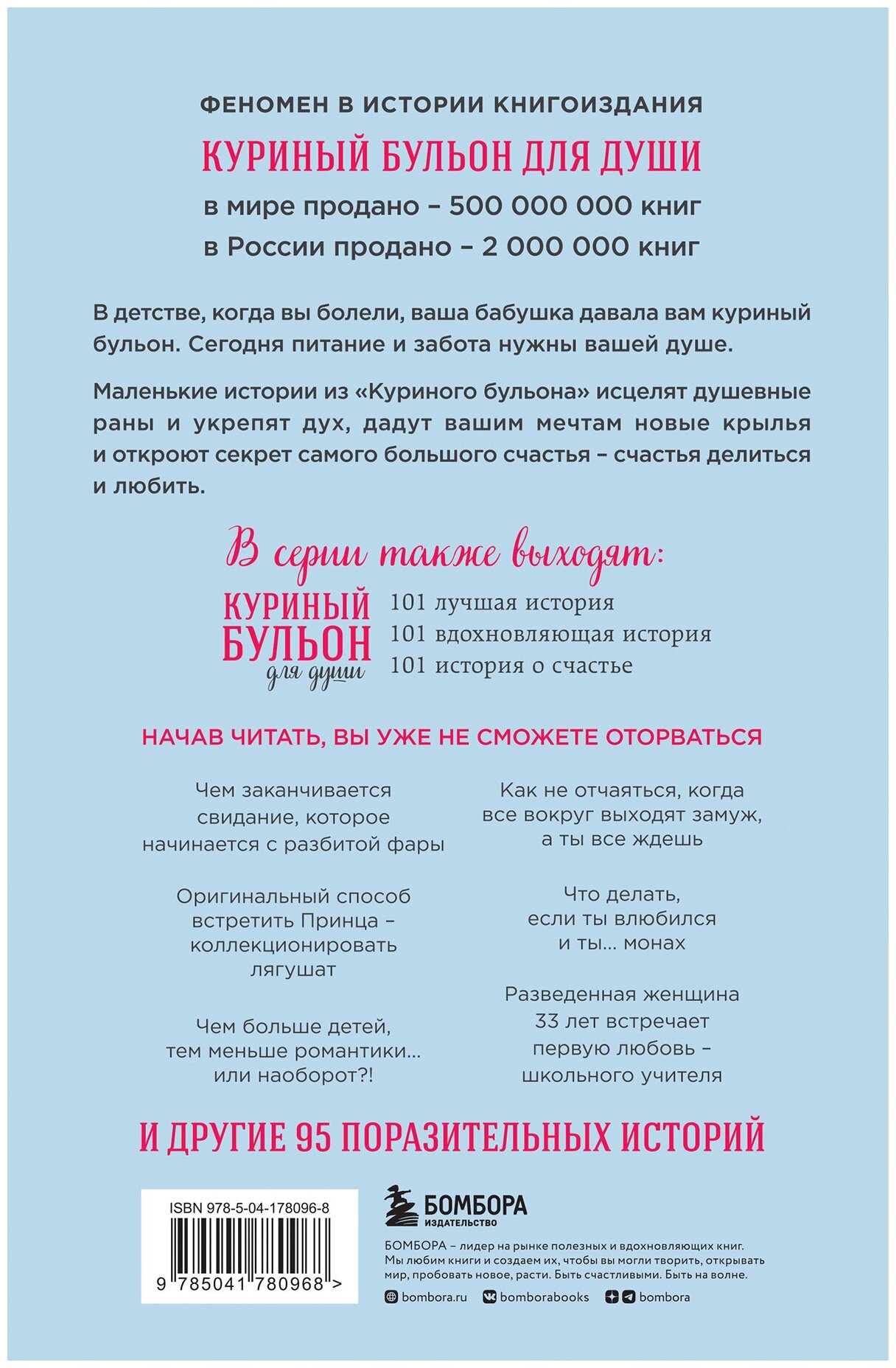На сегодняшний день товар «Книга: Куриный бульон для души. 101 история о любви (Хансен Марк Виктор, Кэнфилд Джек, Ньюмарк Эми); Бомбора, 2022» можно купить с кешбеком в 3 магазинах: book24, Буквоед, Яндекс.Маркет