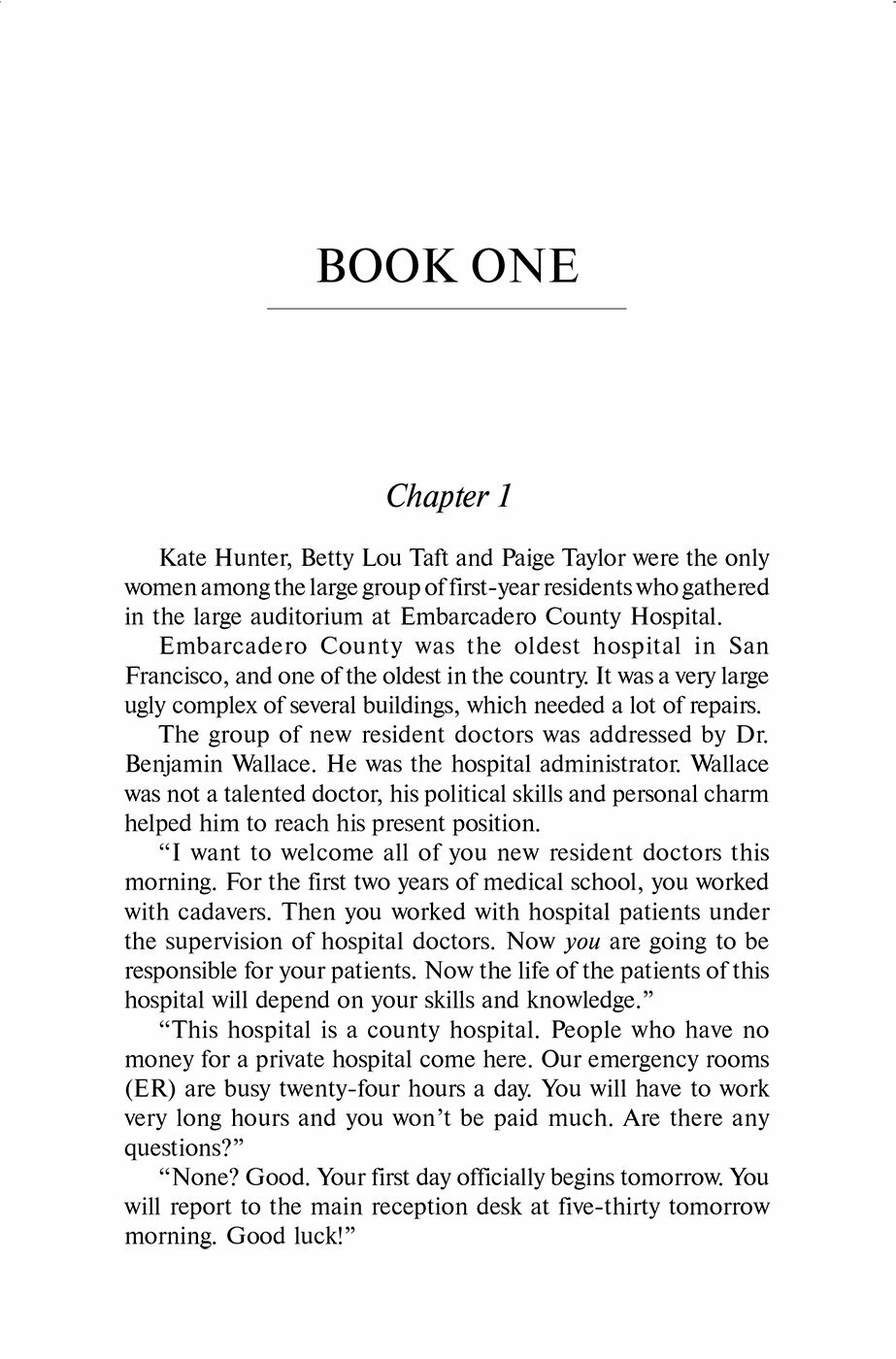 Место действия романа - окружная больница в Сан-Франциско - "маленький мир", где есть место для всего: дружбы, любви, коварных интриг и даже убийства.