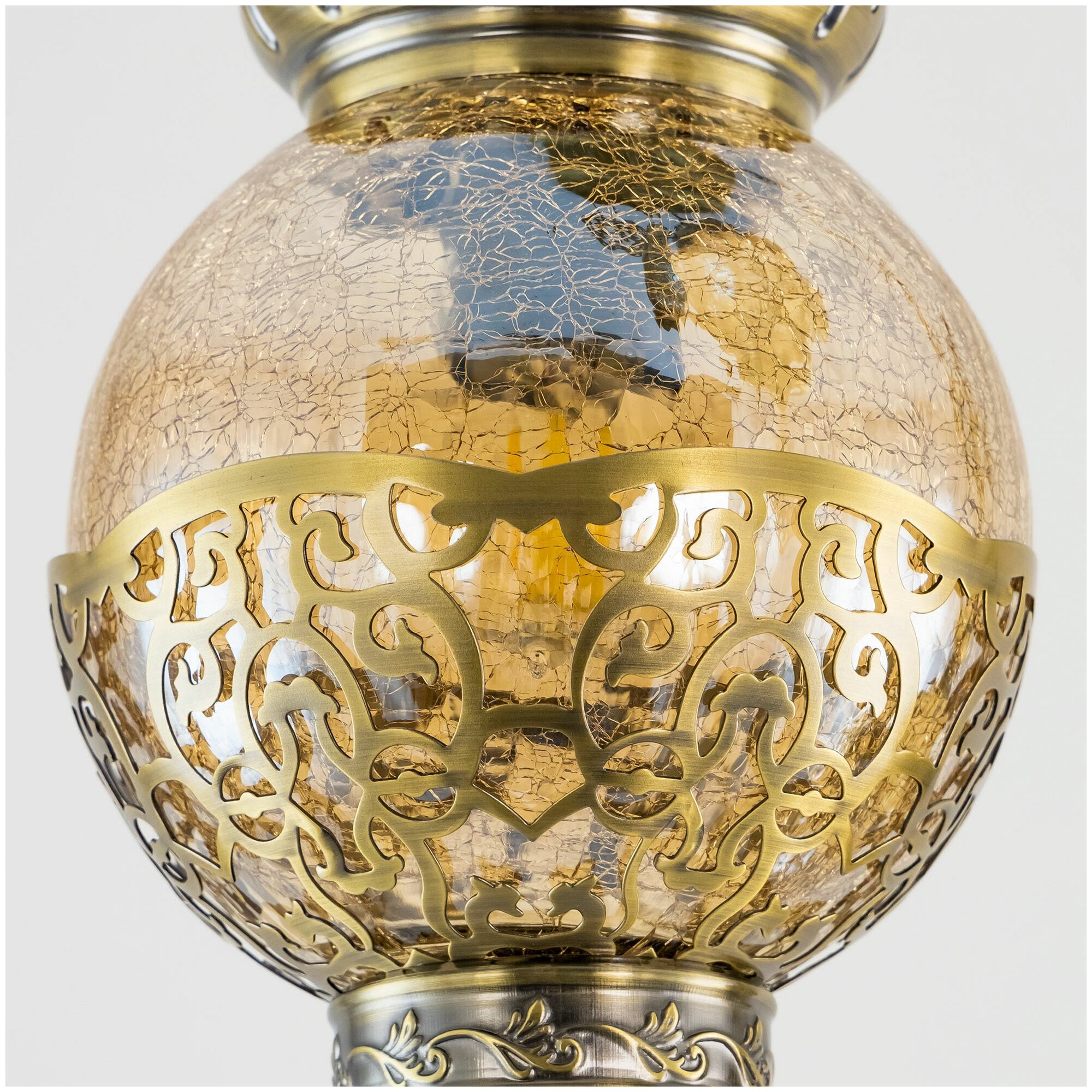 Восточный каскадный светильник Citilux Каир CL419133 с тремя подвесными плафонами. Корпус металлический, цвет бронза. Плафоны в форме шара, изготовлены из прозрачного стекла медового оттенка, украшены декоративными, ажурными элементами. В изделии используются лампы с цоколем Е27, максимальной мощностью для ламп накаливания 75Вт. Светодиодные лампы можно устанавливать более яркие. Модель подходит для всех типов потолков, в том числе натяжных. Тип крепления – планка. Светильник Каир CL419133 прекрасный вариант для атмосферного освещения интерьеров квартир и загородных домов, выполненных в восточном стиле. Это великолепное решение при оформления уютных кафе, баров и ресторанов.