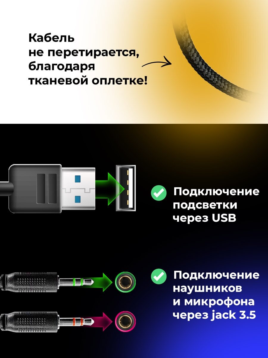 | Тип разъемов | USB для подсветки, 2 x 3.5 мм джек |