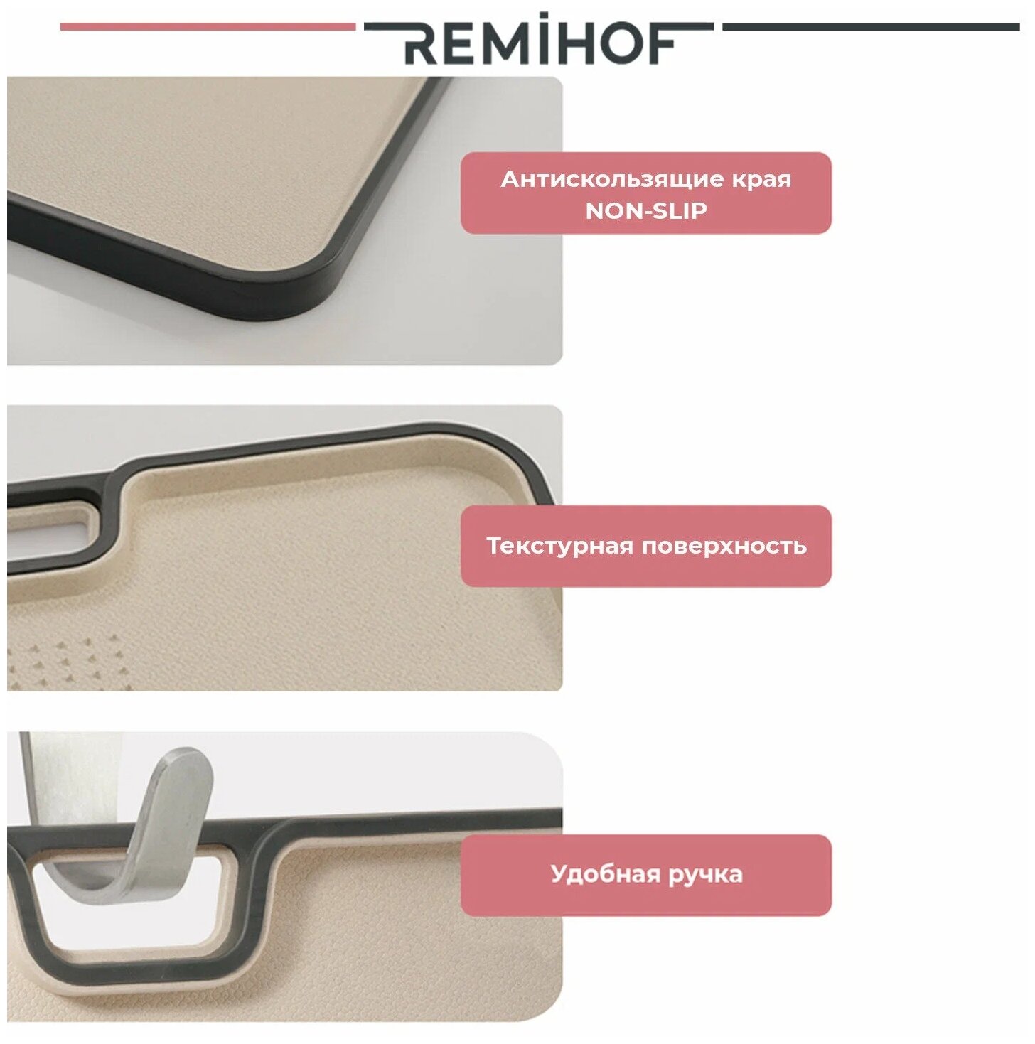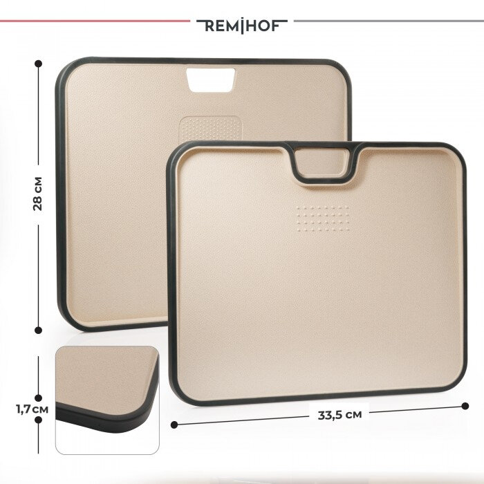 Нескользящие края доски обеспечивают изделию устойчивость. Можно мыть в посудомоечной машине. Доска REMIHOF станет для вас незаменимым помощником на кухне!