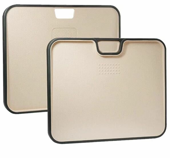 Доска имеет небольшой наклон и оснащена вдоль краев бортиками, которые задерживают лишнюю жидкость или крошки/кусочки продуктов. Таким образом, не пачкает поверхность стола. На поверхности доски расположены специальные зубчики для плотной фиксации мяса. Удобна также для размельчения чеснока.
