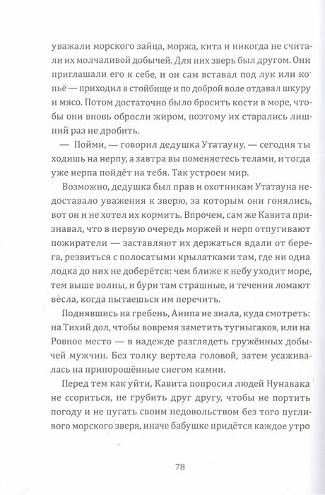 Очень колоритная книга, насыщенная удивительной культурой эскимосов и пронизывающей атмосферой тундры. Некоторые элементы культуры пугают, другие завораживают. Но равнодушными к ним точно остаться нельзя.