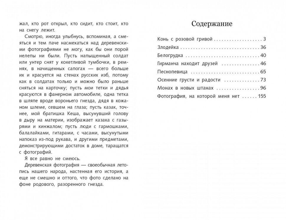 В этот сборник мы включили произведения Виктора Петровича Астафьева, рекомендованные для чтения в средней школе: "Конь с розовой гривой", "Злодейка", "Белогрудка" "Гирманча находит друзей", "Песнопевица", "Осенние грусти и радости", "Монах в новых штанах", "Фотография, на которой меня нет". Все произведения писателя пропитаны любовью к русской природе. Они описывают жизнь простых людей, с их радостями и огорчениями, победами и потерями, нравственными терзаниями и верой в добро