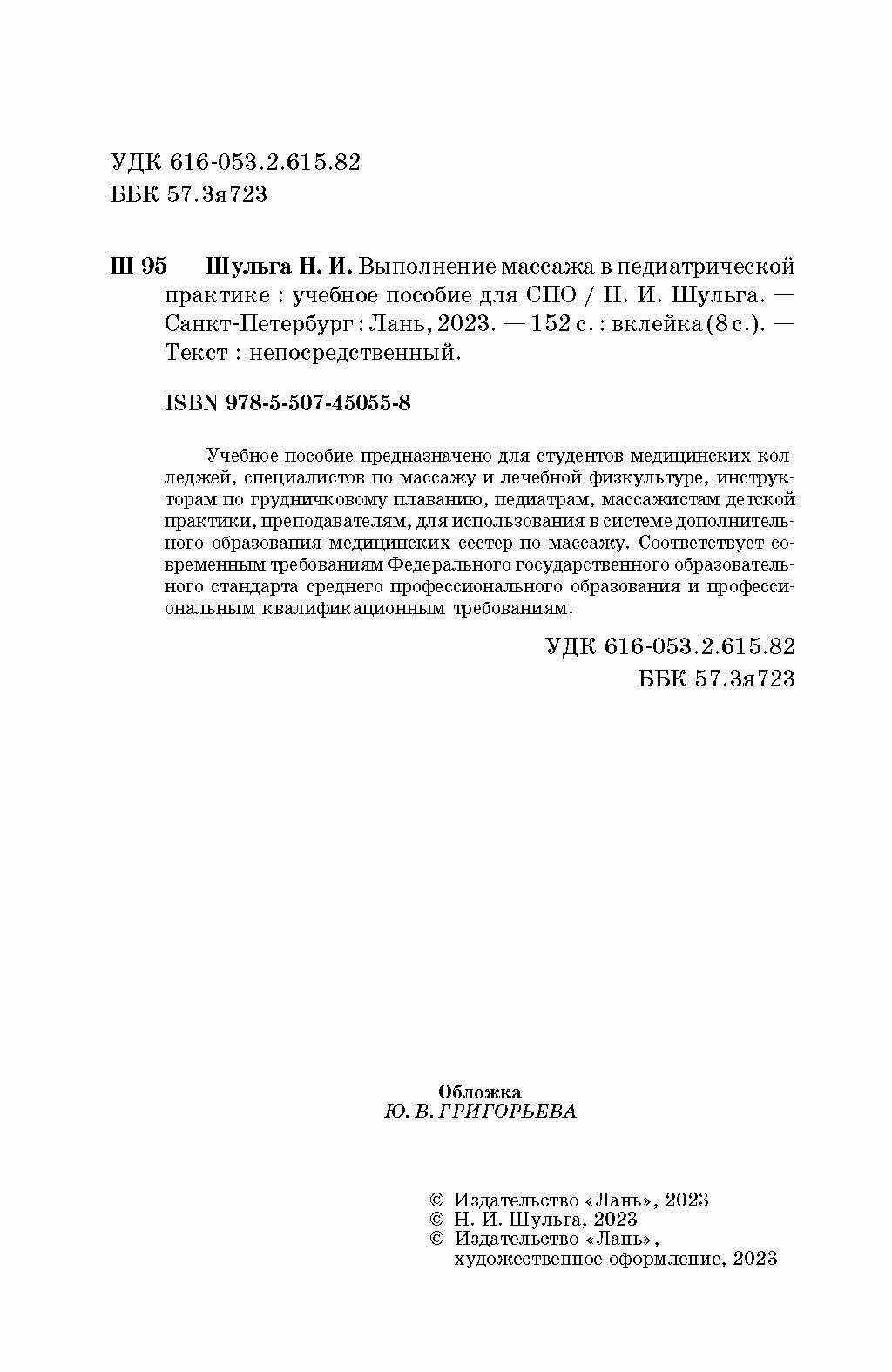 Выполнение массажа в педиатрической практике (Шульга Наталья Игоревна); Лань, 2023
