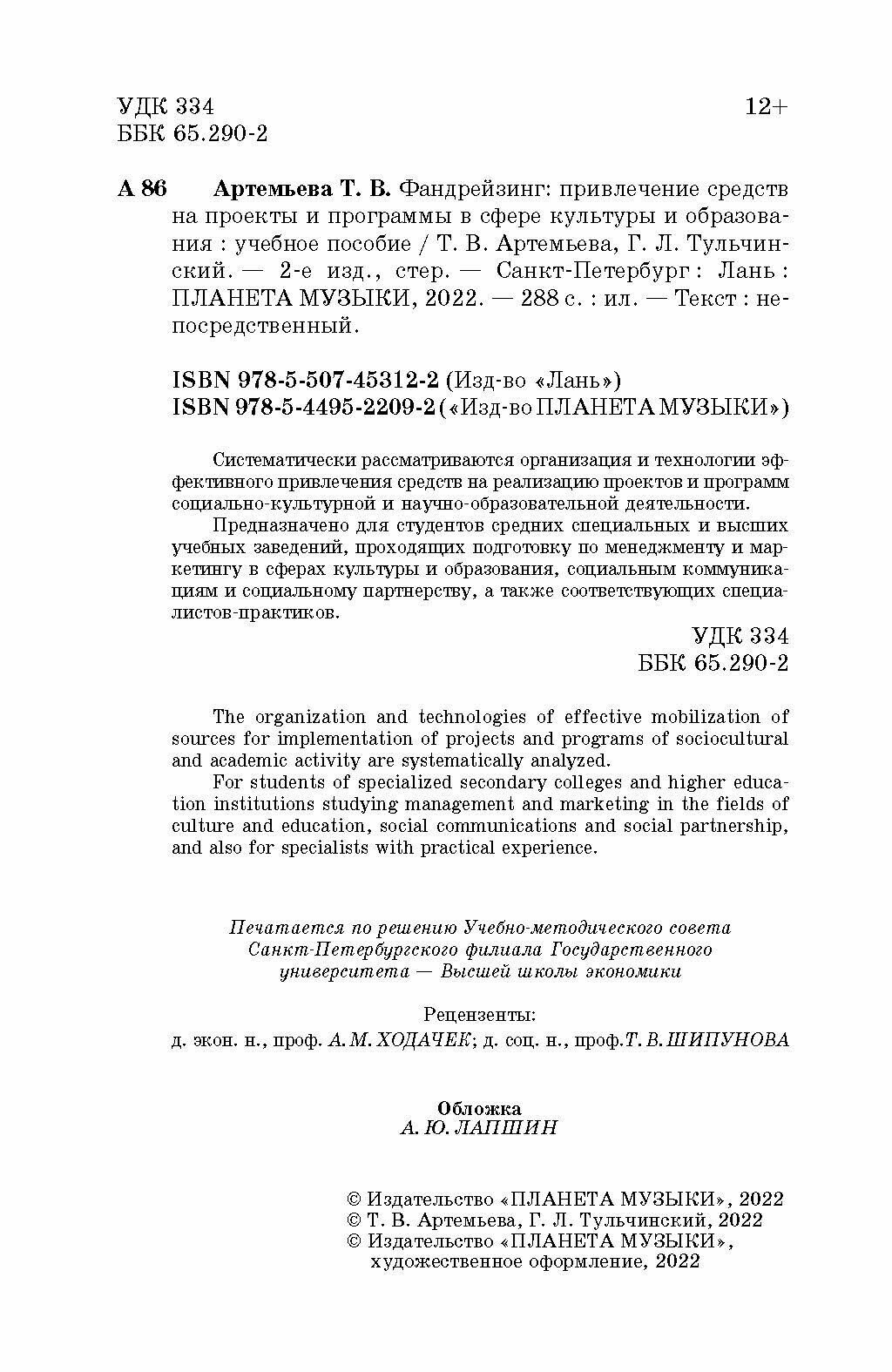 Фандрейзинг. Привлечение средств на проекты и программы в сфере культуры и образования (Артемьева Татьяна Владимировна, Тульчинский Григорий Львович); Планета музыки, 2022