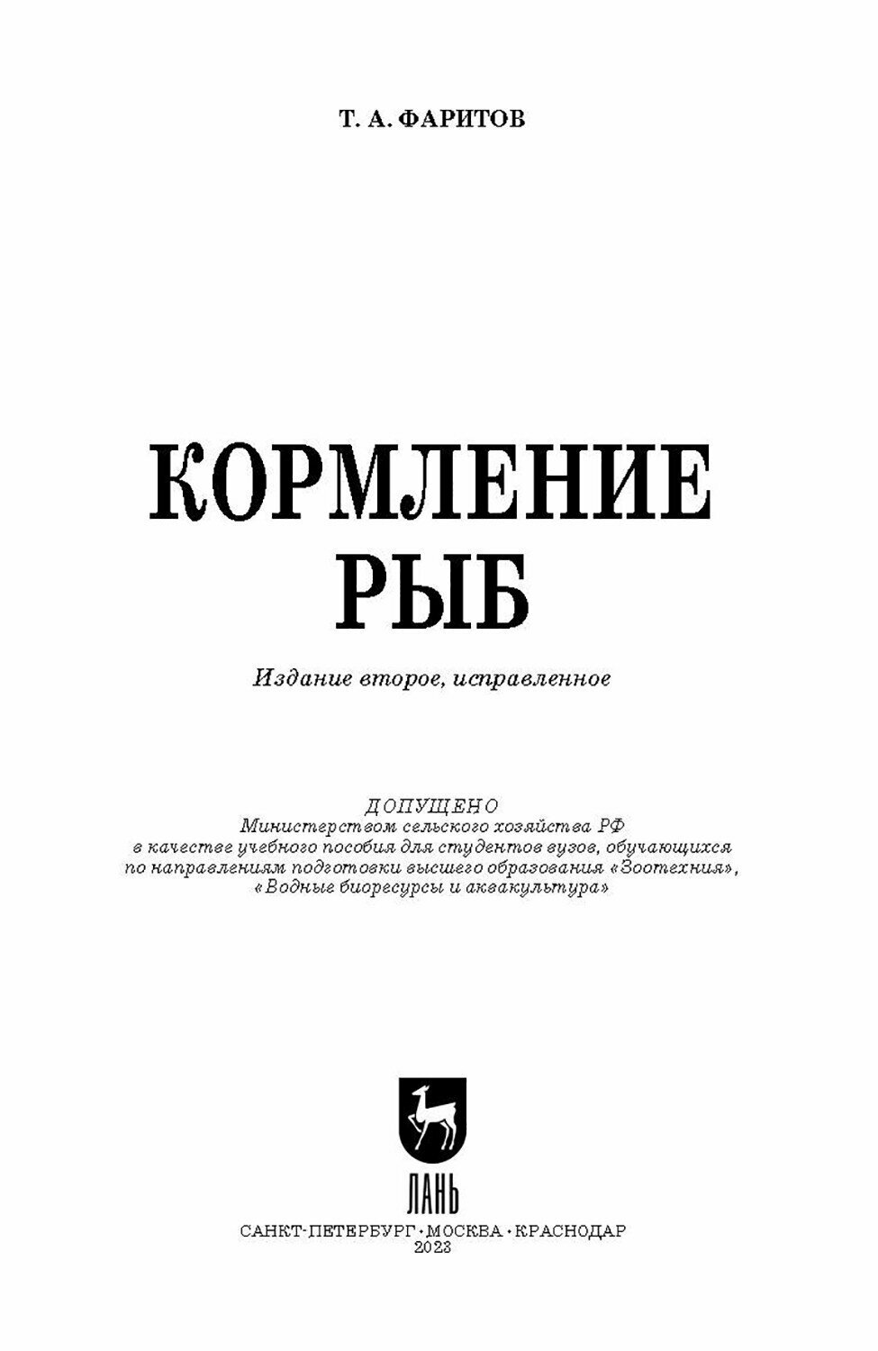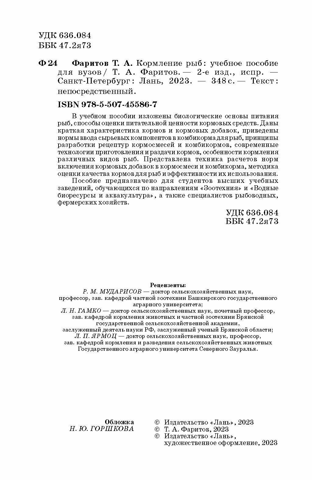 Кормление рыб. Учебное пособие (Фаритов Табрис Ахмадлисламович); Лань, 2023