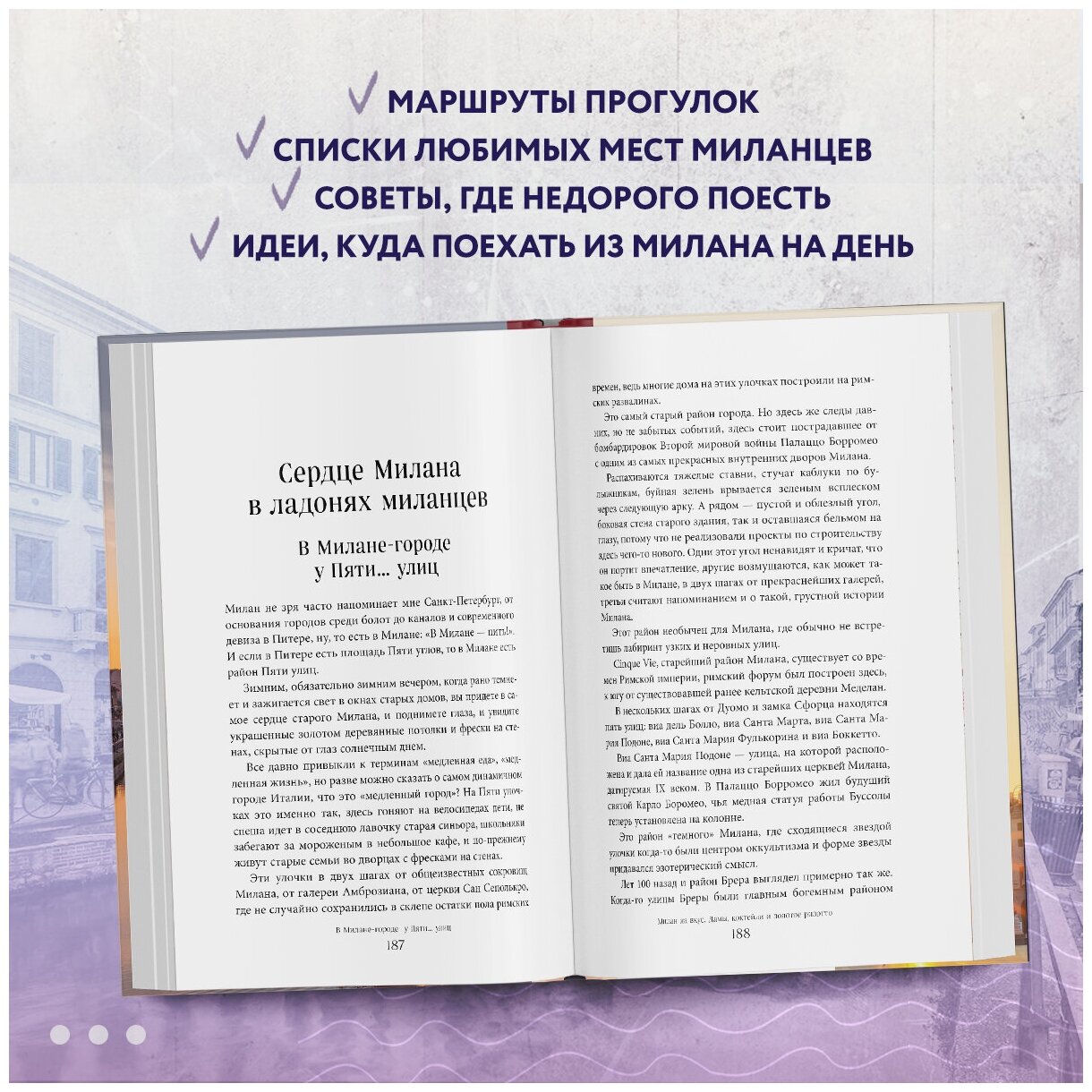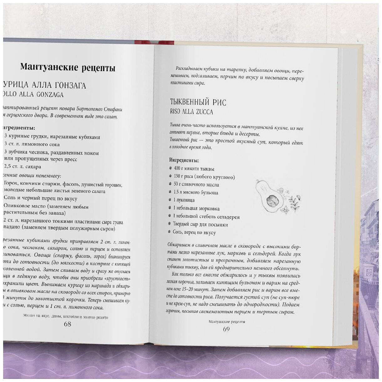 Хотя книга с очерками только об одном городе и рецептами аппетитных миланских блюд (тоже всего из одного региона), довольно объемная, не тоненькая. Хотелось бы подлиннее повествования, старинные загадочные истории подольше почитать. Язык живой и легкий, уж очень быстро интересное чтение заканчивается.