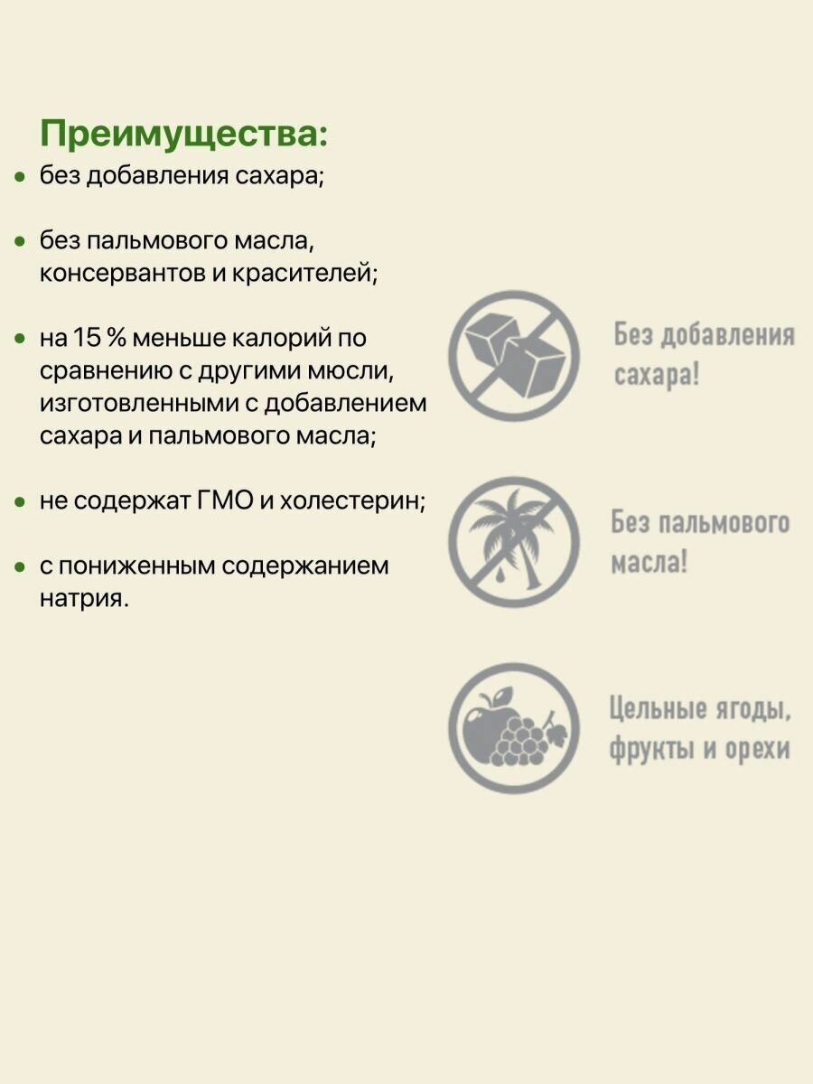 | Способ приготовления | Продукт готов к употреблению. По желанию можно добавить молоко, йогурт или сок. |