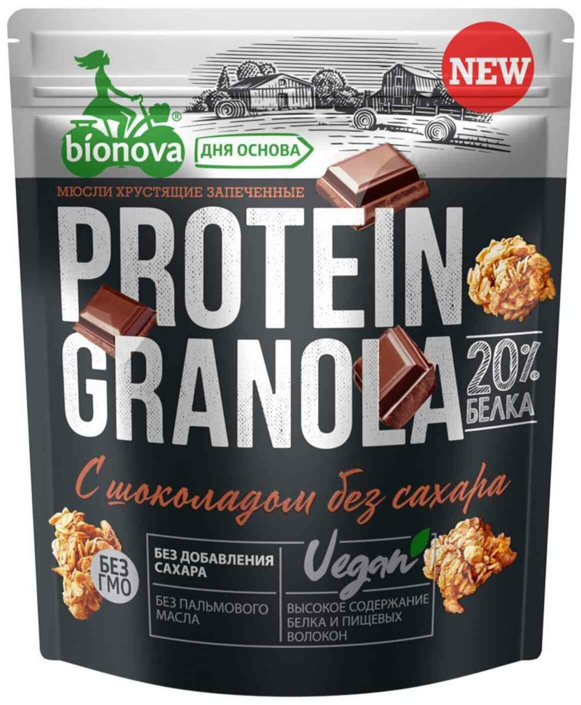 Протеиновая гранола Bionova Шоколадная отличается высоким содержанием белка в сочетании с медленными углеводами и пищевыми волокнами цельного зерна. Это готовый к употреблению, сбалансированный, вкусный и полезный завтрак либо перекус, в который можно добавлять обычное или растительное молоко, кефир или йогурт на ваш вкус. Готовы к употреблению. По желанию можно добавить молоко, йогурт или сок.