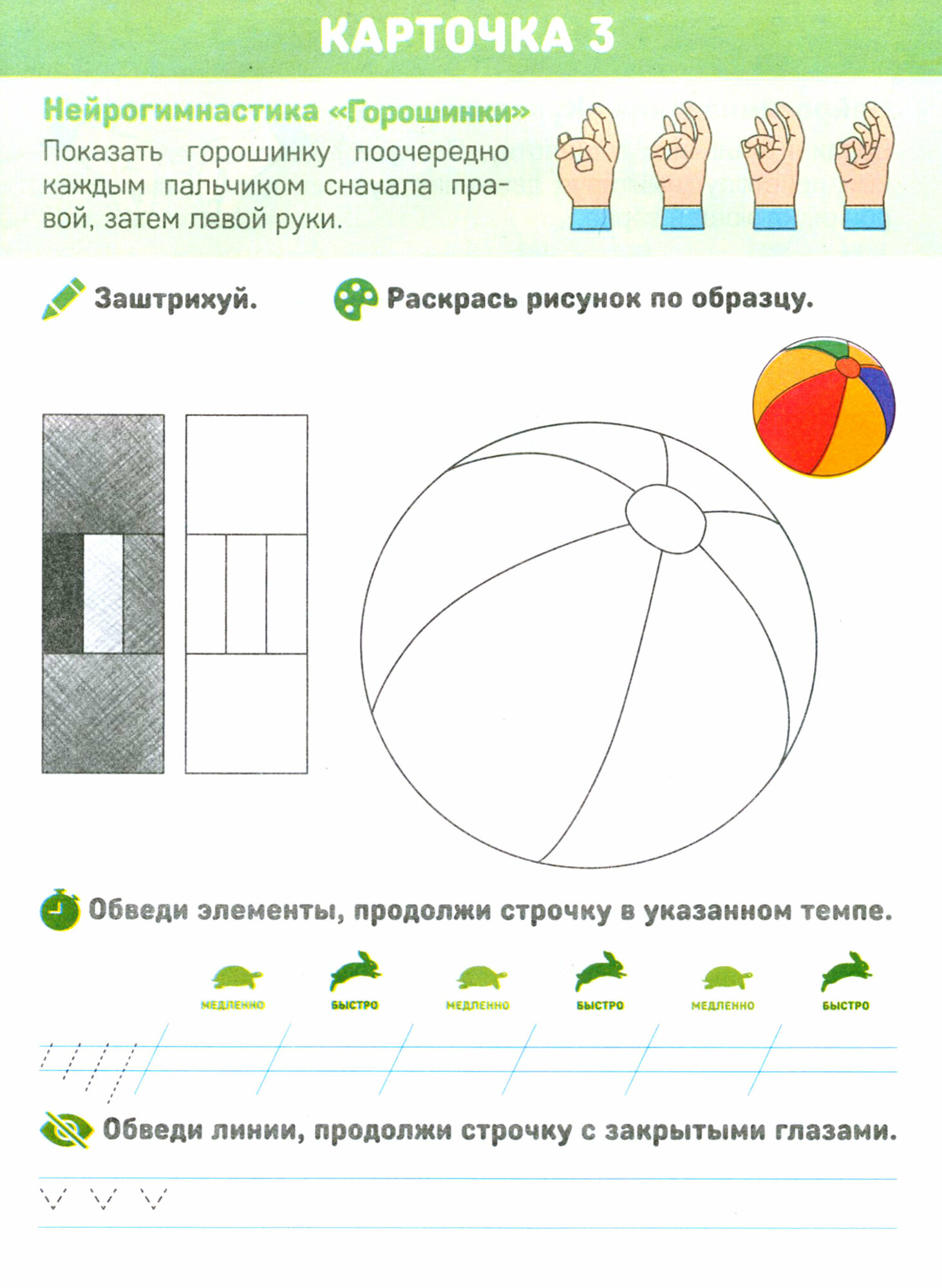 Задания в тетради целенаправленно тренируют различные умения и навыки, необходимые для обучения письму: зрительно-моторная координация, межполушарное взаимодействие; внимание, зрительное восприятие; мелкая моторика руки, пространственно-графическая ориентация.