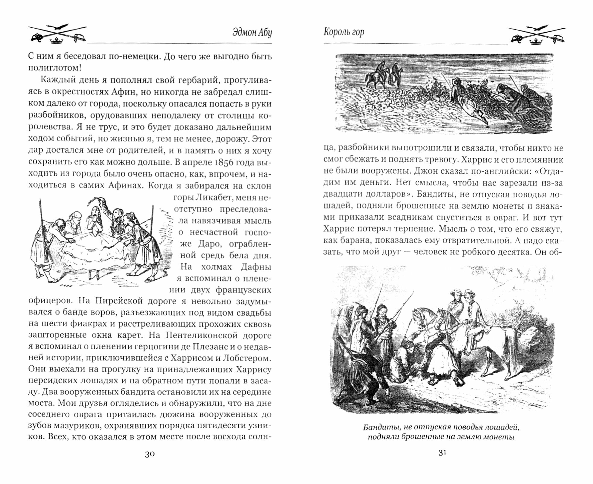 В «Короле гор» Абу рассказывает историю немца Германа Шульца (тот сам поведал её писателю), который в компании двух англичанок - миссис Саймонс, некрасивой старухи, весьма эксцентричной, и её дочерью, красавицей Мэри-Энн, оказывается в плену Хаджи-Ставроса, главы греческих разбойников. Чтобы получить свободу они должны заплатить Королю гор 115 тысяч франков - немалую сумму. Вот только где её взять?.. Быть может предпринять попытку бегства?.. А почему бы и нет!.. Однако от Ставроса так легко еще никто не уходил…