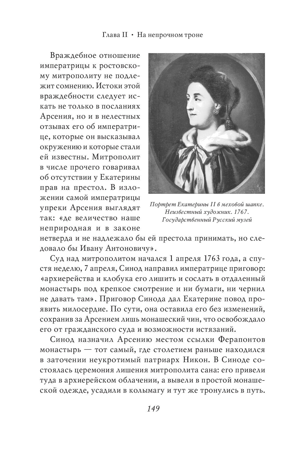 Екатерине Алексеевне явно не везло с оценкой ее царствования ни в дореволюционной, ни тем более в советской историографии. Еще в годы ее правления современники отмечали немало темных пятен, затмивших в их глазах то положительное, что было связано с ее именем. Во-первых, она была чистокровной немкой, и, видимо, национальная гордость не позволяла давать ее царствованию объективную оценку. Во-вторых, и это, пожалуй, еще важнее, она не имела никаких прав на престол и узурпировала корону у собственного супруга. В-третьих, на ее совести, если не прямо, то косвенно, лежит печать ответственности за смерть не только супруга, Петра III, но и свергнутого еще ее предшественницей императора Иоанна VI Антоновича. Наконец, нравственность императрицы не вызывала восторгов ни у современников, ни у историков.