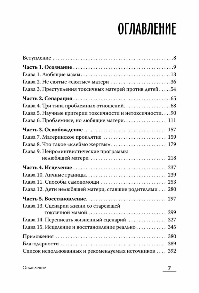 Книга состоит из научных исследований и профессионального опыта автора, как психолога и гештальт-терапевта. Хочется сразу сказать, что довольно многие могли бы назвать свою маму токсичной, даже не смотря на то, что детство у вас было теплым и полным любви. В принципе многих людей можно охарактеризовать как токсичные, тем более сейчас, когда слова "токсик" и "абьюзер" еще не научились правильно определять. Здесь же идет речь о матерях-деспотах, нарциссах, психопатах, социопатах и тиранах. Эти термины относятся к серьезным психическим расстройствам. Что тоже важно знать сразу, книга рассчитана для детей таких матерей, чтобы помочь им принять это и вылечиться, оставить груз детства в прошлом, и не нести его в свое настоящее и будущее, а так же сепарироваться тем, кто все еще не может это сделать. Тема сепарации в книге отделена от общего направления "мама-токс". Сепарация должна произойти у всех рано или поздно, но порой для этого нужно предпринять определенные меры, это может быть нужно как для родителя, так и для ребенка. В книге вы так же найдете несколько упражнений и самотестов для определение ваших отношений с родителями. Оправиться после тяжелого детства и в принципе принять то, что самый близкий и родной человек приносит вам вред, очень непросто, а иногда и невозможно. Я думаю, что книги такого рода могут служить либо первым шагом - осознанием и понимаем того, что вы оказались в такой ситуации, либо уже завершающей самотерапией после работы с профессионалом. Личная работа с психологом в таких серьезных случаях просто обязательна и даже в своей книге автор предоставляет помощь по выбору специалиста.